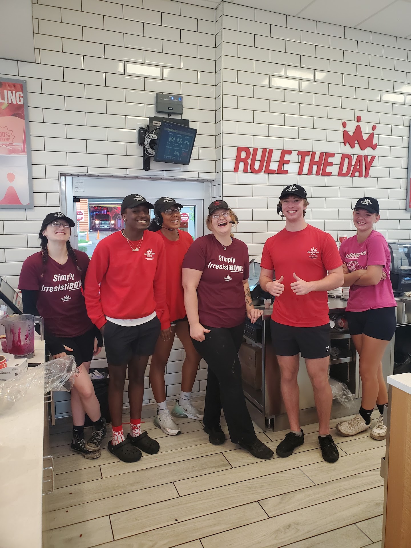 I was acknowledged immediately and promptly assisted. They had a teammate come out of the back to assist me since everyone else was busy. I had a very short wait while my smoothie was being made.