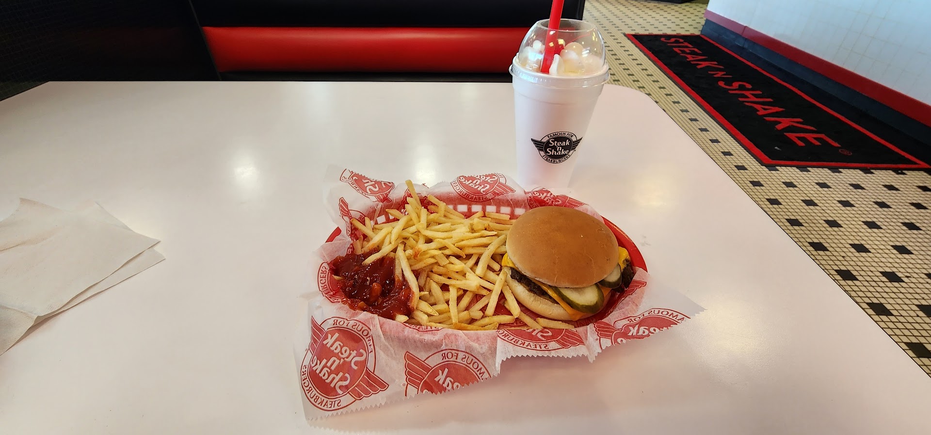 Read moreThoroughly unimpressed and disappointed. My family and I came in at non-peak hours. There was only (1) order ahead of us and no orders in drive through. We came in at 16:09, and ordered 4 entrees. My Bacon Cheese Double Combo, came WITHOUT the fries I ordered. My bacon cheeseburger ALSO didn't have the bacon. My son's Triple Cheeseburger Combo with LG cheesy fries, came WITHOUT the cheesy fries and only came with (1) patty and NO BACON. My other son ordered a grilled cheese with bacon and grilled onion. It came WITHOUT the onion. My wife's fries were cold and stale. We had to go and get all their errors fixed. The restaurant had a distinct "sewer smell" from the plumbing, as soon as you walk onto the foyer. I will not come back to this location. The staff seemed not to care too much about our extremely inaccurate food order. To top it off, the napkin dispensers were completely empty. When we asked for napkins, they handed them to us, with ketchup already on the napkins. The floors and table were sticky. The restrooms were dirty. The staff was standing around and shooting the breeze.This experience was just atrocious. I expected better from Steak and Shake, but I guess their standards have lowered. I've also sent a copy of this review to their...