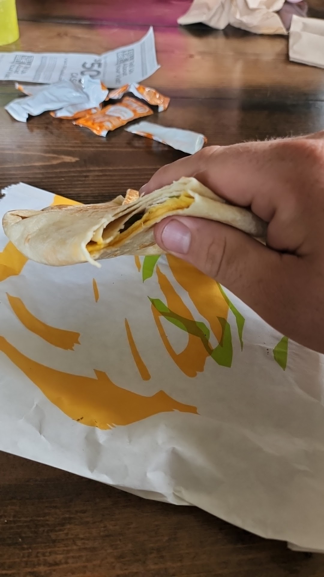 Now, here's my issue. I walk in around 10, a full day of work ahead of me. Perfect opportunity for breakfast. I realize that I probably won't be able to get lunch later, so I should probably eat an early lunch now. Breakfast is off the table. I already know what I'm ordering. I step up to the sleepy eyed cashier and confidently say "Two BLT Crunchwrap Sliders, my good man". He seems momentarily confused. He turns and looks at the giant menu, then back at me. "We don't have the sliders anymore, sorry. We've got the quesalupa now. There's cheese in the shell!"