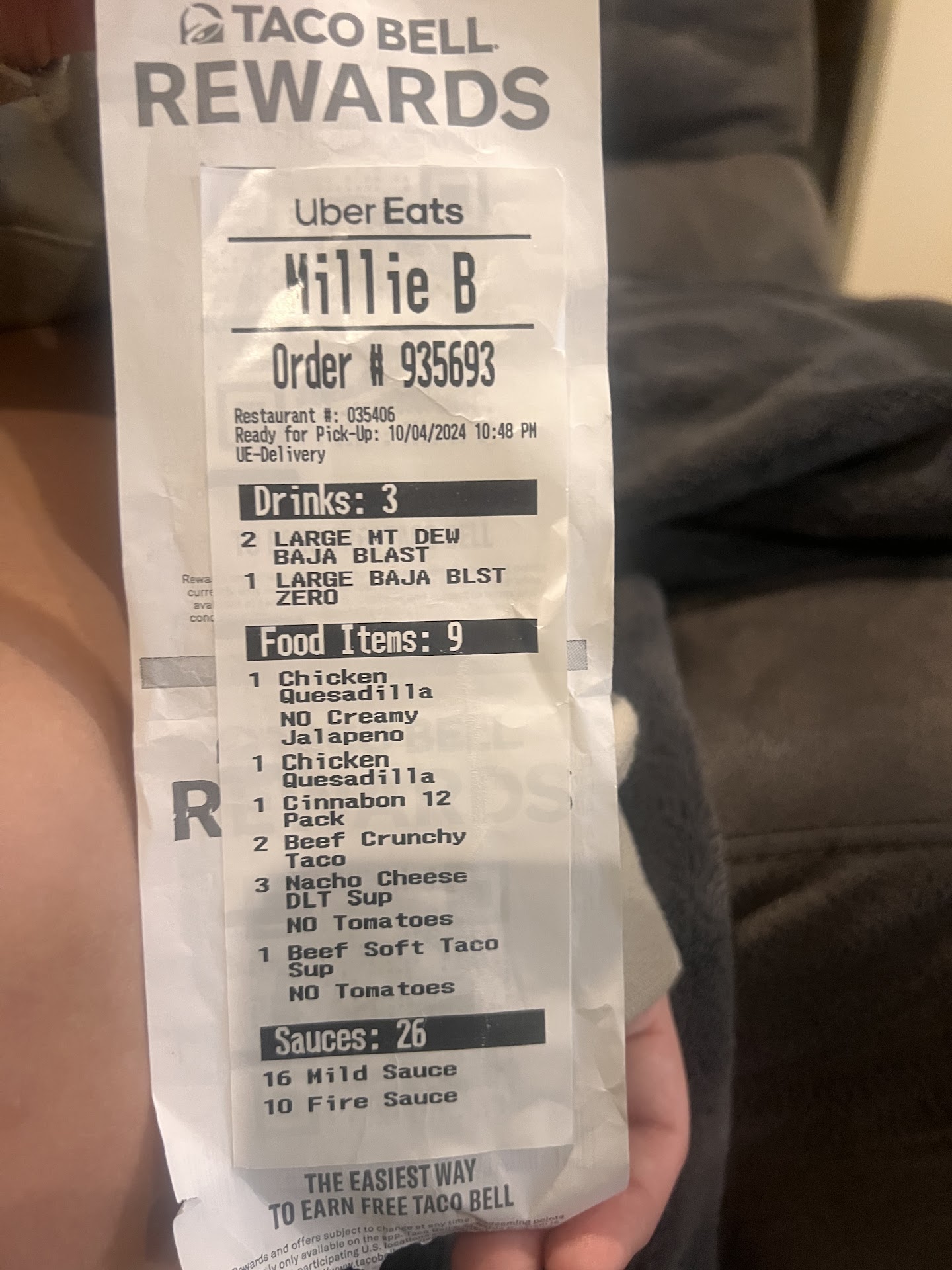 Read moreWent to drive through and ordered a burrito supreme with no red sauce, a chicken chalupa supreme, and chicken Chipotle, ranch, and chicken burrito. It cost $11 and change. The lady who took our order was extremely rude. Upon leaving we found that we got a bean burrito instead of a burrito supreme, so we went back. The lady was again extremely rude when we explained what happened. After we got that replaced we left and I tried to eat my burrito supreme and noticed I was not tasting any meat and opened my burrito and found no meat. So I then tried to eat my Chalupa and the shell was too hard to eat and had 5 pieces of tomato, so I had to throw them away. I tried to call the store but got a fax. I will never return to that location and think maybe that lady in the drive through last night needs a stern talking to. Guests shouldn't be treated in such a way and the food should stand up to the quality they advertise all over television. I hope something comes of this or that location will probably close if it continues to serve such poor quality food with such crappie service. I tried to show her the burrito and she cut me off Really abruptly saying I can't bring that into the store. I said I am aware, I was trying to show you that it was a bean burrito so you know I'm being right with you. She then walked away while I was requesting taco sauce then shut the window on me. Then stood there for a few then opened the window and asked what kind of sauce? It was very upsetting and blatantly disrespectful. I was going to take pictures of my food but I was working, delivering food and had to get it out of the car. One thing I know for sure, I won't deliver food for that particular location. I will not accept a delivery from them for the simple fact that guests might get sick. The food tasted old and was inedible. No way to contact the store. I hope this helps others so they don't get sick...