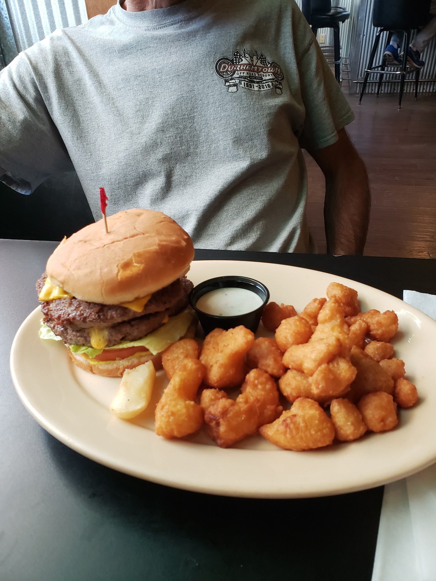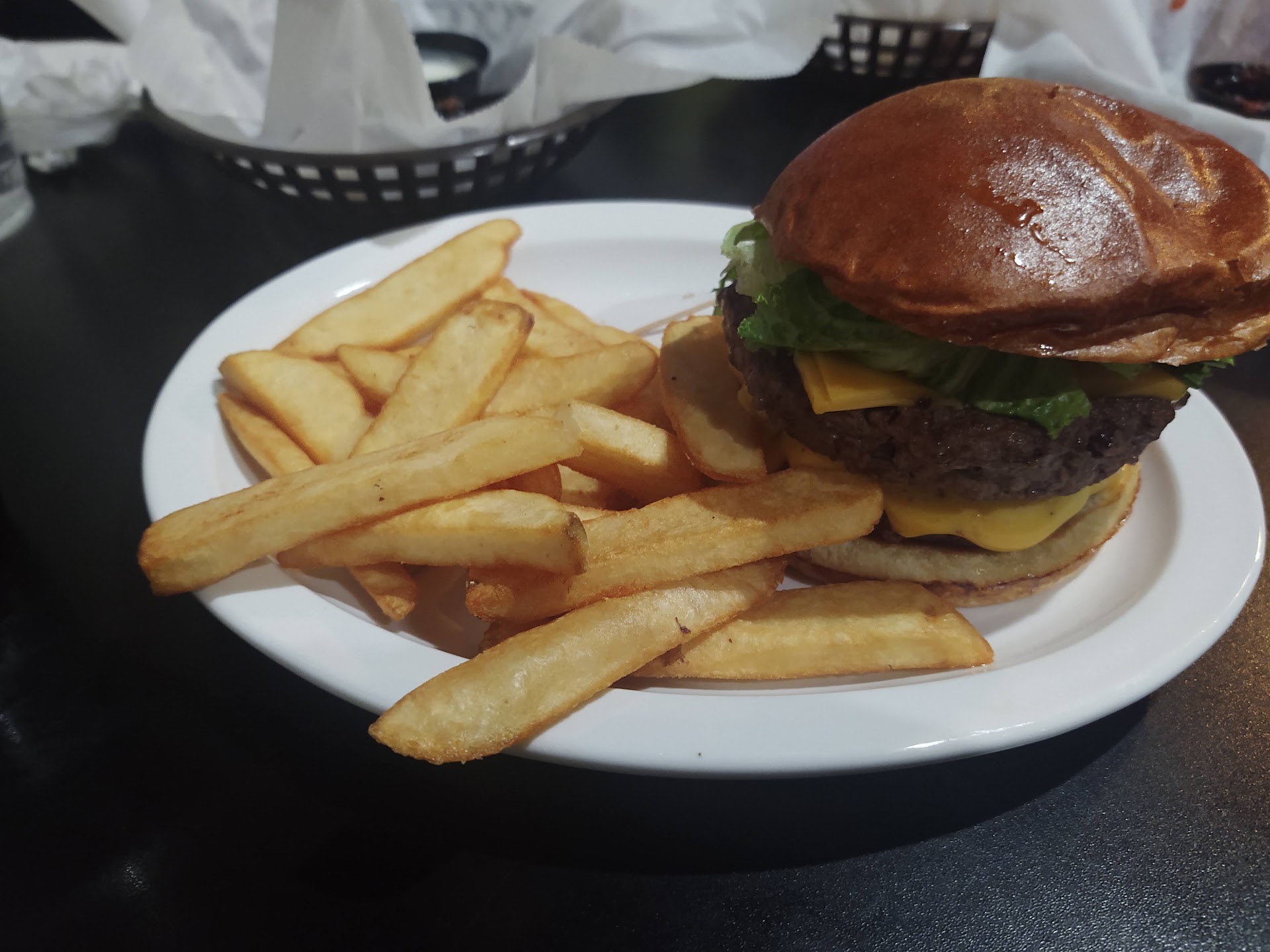 Beer is cheap, owners were nice, place was very quite though there were over a dozen customers eating, dining and smoking at the bar, the fan was the loudest thing inside, we sat next to it and the door. Enjoyed our beers (half pitchers of domestic for $3.50), ordered the shoe cheese burger and a chicken sandwich with fries watched them get cooked in the back kitchen.