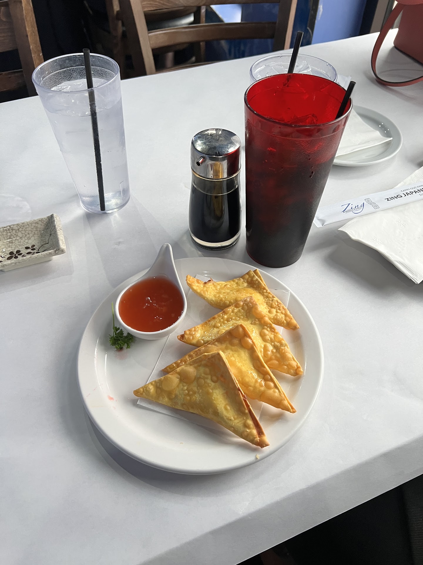 I got the California Roll and Crab Rangoon and I found both of them to be very delicious. Notably, the sushi was prepared incredibly fast and I had all of my food within 10 mins of ordering (Ordered for two people including myself). As you can tell from the lack of the picture of sushi, I enjoyed it very much lol. I was also quite surprised with how much they were able to pack into each roll, definitely the most packed rolls I've ever had. The Crab Rangoon had a nice breading to it, but if I'm looking for any reason to critique it, it could have been slightly more crispy. I think that the Sweet & Sour sauce that was served with it was fresh and had great flavor.