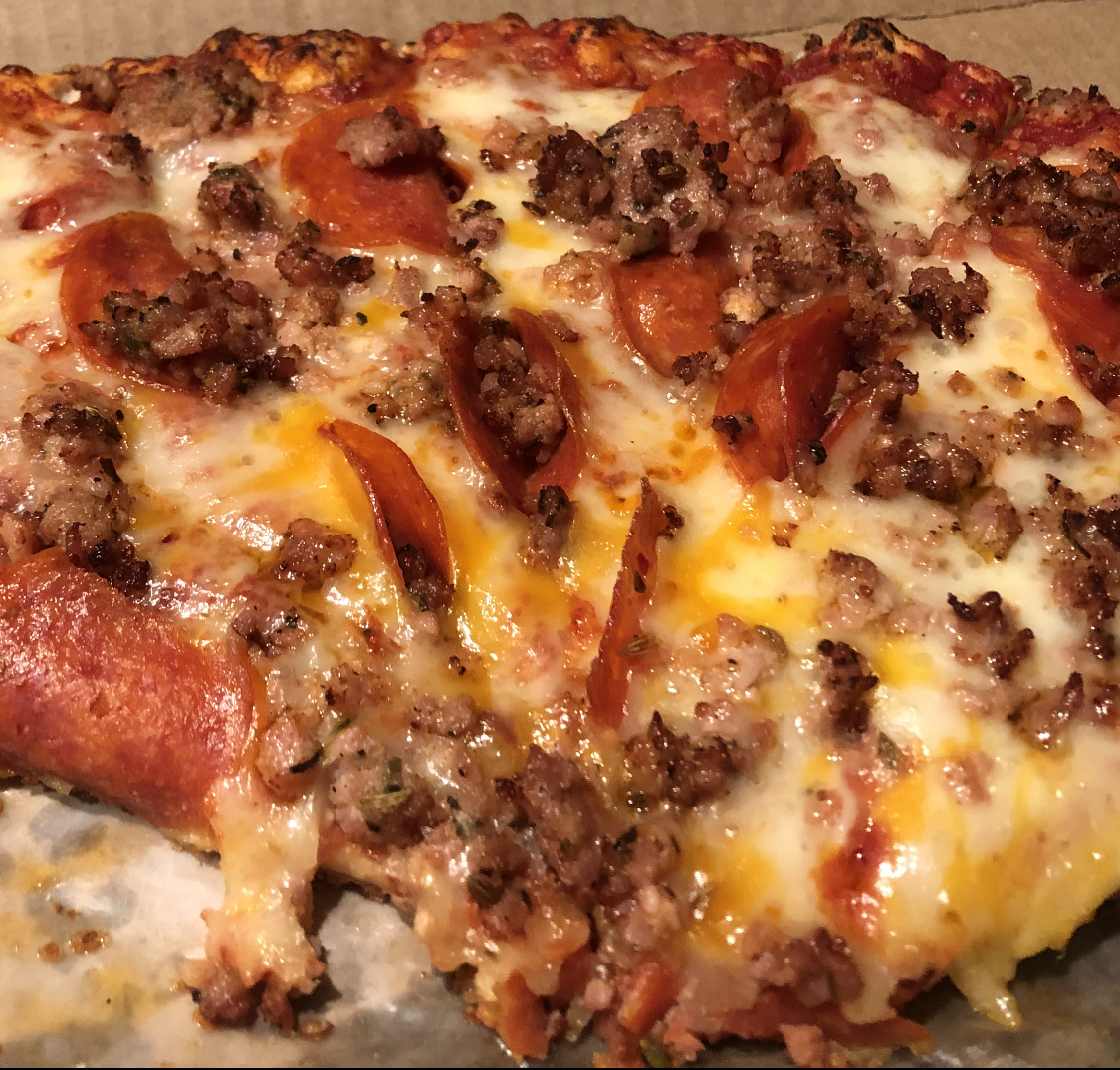 Well, I went back and decided to get my usual: A large pepperoni, mushroom, olive, and ground beef pizza with extra cheese and extra sauce.