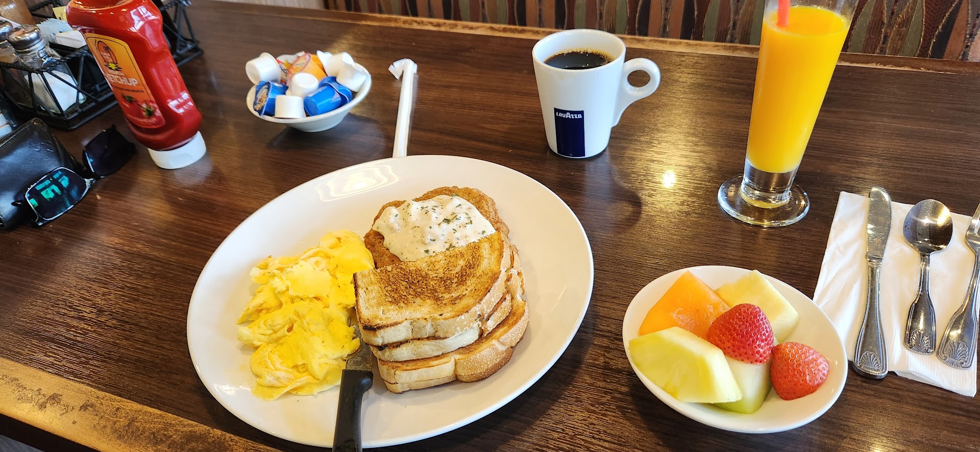 Previous visit Had a terrific breakfast yesterday at Broken Yoke. Juan was my server and was terrific, providing quality customer service. I ordered the chicken fried steak with fruit, two scrambled eggs and sourdough toast and it was perfect. I could not finish it all but it was truly a good breakfast. The ambiance was calm and cool with terrific background...