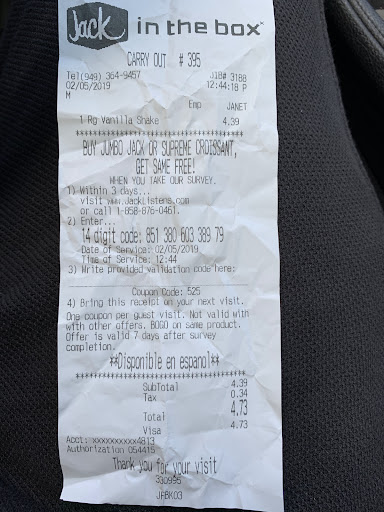 Ā Ā Ā Read moreWe waited in line 15 min and about approximately another 12 minutes at the window. The window person did not apologize and continued to make us wait an additional 3 minutes or so. He was rude as well. Handed over bags and didnāt say anything. We asked for cookies for our 3 kids for the inconvenience wait time without asking us to wait in parked waiting area, and he straight out said NO. Name on receipt says Cristo C. Unsure if its the same person who gave us a bad experience. We decided to eat and Jack vs In and out to prevent the long line. But In n Out couldāve been much faster this...