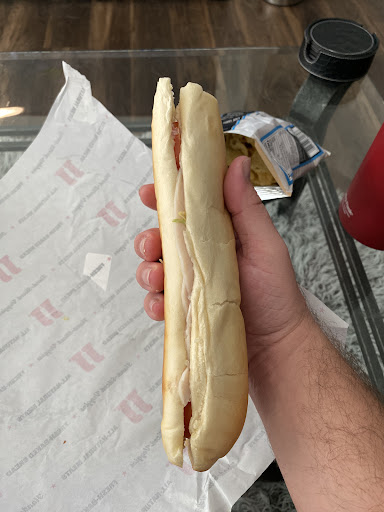 I Love these sandwiches, I Can eat them 2 or 3 times A-day and not get sick of them. Have actually done that quite a few times. As a matter of fact I almost made it a whole week straight one time surviving solely on Jimmy John's sandwiches. I stumbled across the Jimmy John's franchise in Arizona, at that time I would travel to Arizona once a month. I would eat there a couple times and always grab a couple sandwiches for the drive home. And always get a dozen "day old bread" at $.25 a loaf is the only sandwich bead I buy (Now I can pick up a couple every other day). About 6 or 7 months later I discovered they were opening a few in California. I was thoroughly Extatic when I learned thus, even more so to find out one was opening less than a mile from my house. They did not disappoint just as tasty if not more than what I remember from Arizona. The staff is always friendly, always helpful, have great suggestions if you're not sure, it is your 1st visit, or just want try something new. They have a great option to "Jimmy up" your sandwich, this is simply adding onions, pickled peppers (which are amazing) and oregano & basil sauce all this trio added to your sandwich changes the experience completely. I personally prefer to use the app to order my sandwich that way I can make it exactly the way I choose without having to remember or explain it to anybody. you can save your favorite sandwich in the app. Giving you the option to be to place your order in about 4 taps to your phone, having it ready within a couple minutes sometimes seconds. Now for the con, the reason for losing a ā. The way they wrap your sandwich (there is actually a diagram that shows you how to unwrap your sandwich it & wrap it backup if you don't finish it) it's very ingenious. However If I am not driving or on the go, I prefer not to use this method. I choose to have it cut in half if I'm sitting down eating. You have the option to request this by telling them when ordering or checking a box in the app. Now for some crazy reason (& it's not just this location it's every Jimmy John's I have ever visited) they can not remember to cut my sandwich in half. of course I don't realize thus until I get to where I'm going, now I have to either find a knife & a clean cutting surface, or without such items I'm now left with one option, to rip my sandwich in 1/2. This gets food all over my fingers, hands, & under my nails. It never goes well leaving half with a piece of meat hanging out, a smashed tomato slice, etc, it's just not an enjoyable scenario. This happens around 63% to 77% of the time. This actually happened last visit. I ordered 2 sandwiches via the app, I checked the option box thus requesting that both sandwiches be cut in half. I return home (to my un~surprise) only one was cut in half, I can not even fathom how this happened & keeps happening. Even when I stress the issue. š¤Maybe it's an evil plot for world dominationš, or more likely I come across as a š²dĀ”ckš & don't realize itš They only have 2 cookie choices although when they're so Radically mouthwateringly rich & savory you don't need any more choices. Other than that I love this place, the location, the simple but amazing fresh topping choices, the fresh baked bread (not to mention the awesome smell when they do), friendly staff, & super...