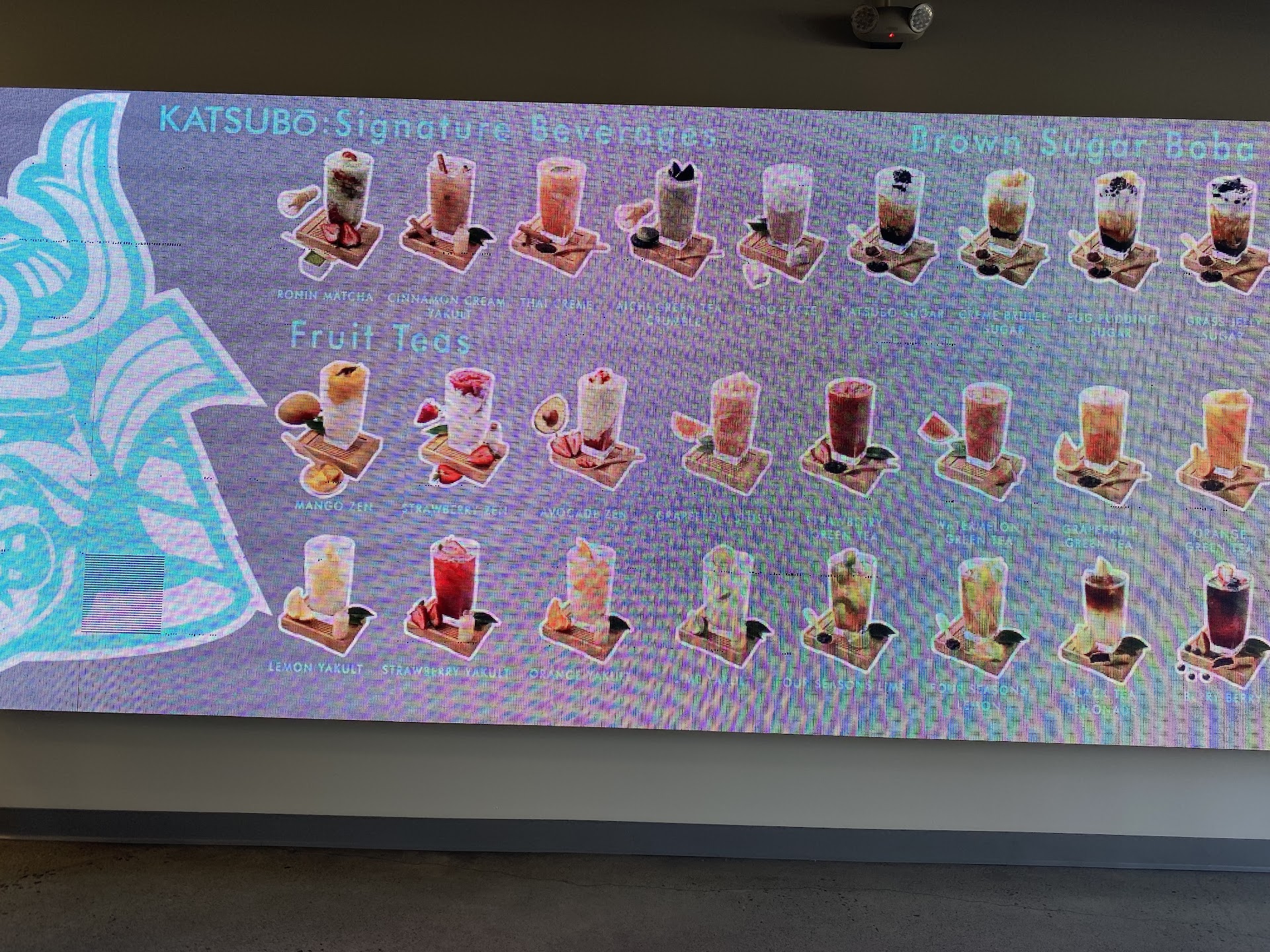 Giant menu hanging on the wall with LED lights - they have a lot of new interesting boba tea options, very customizable too!