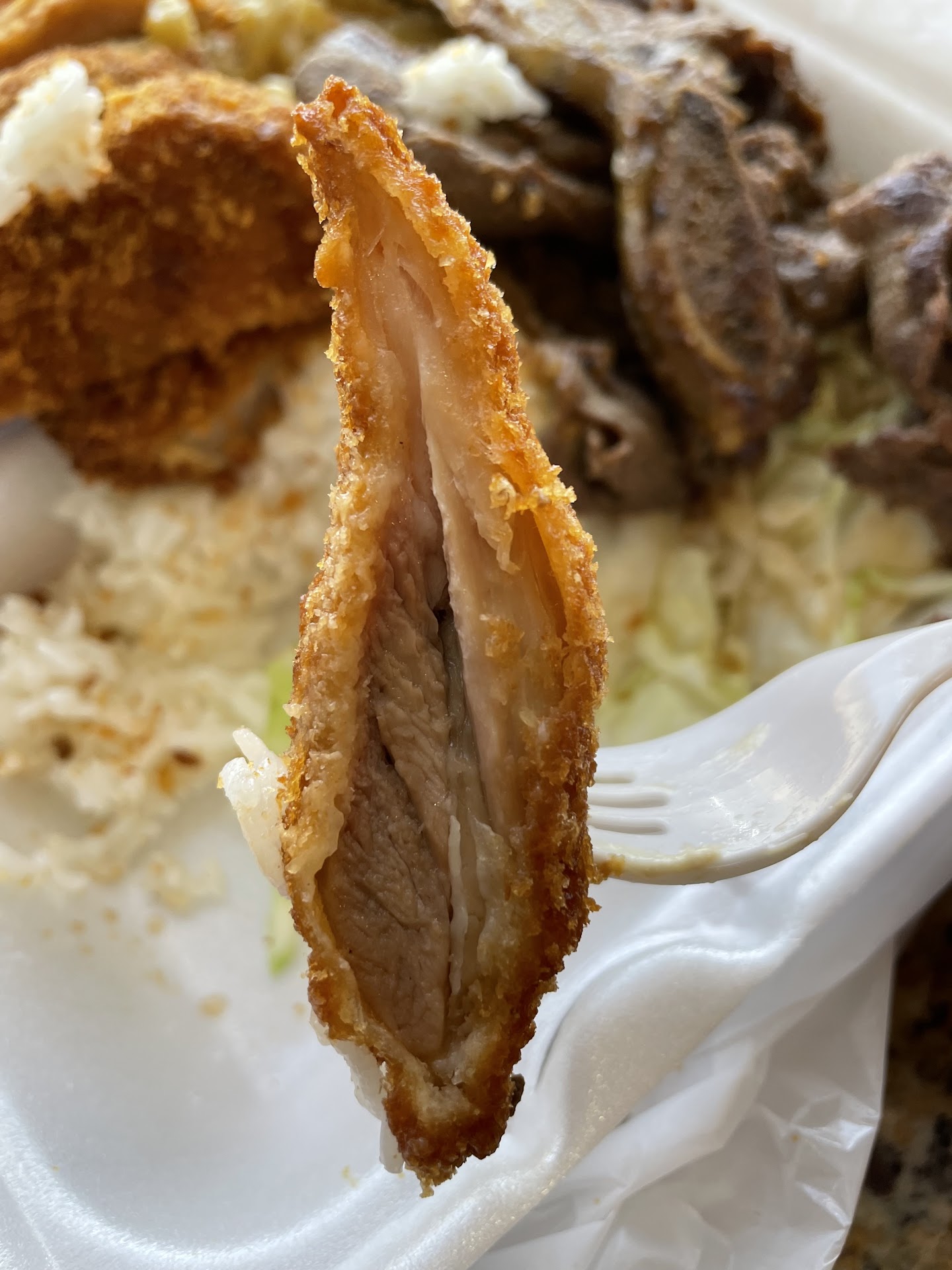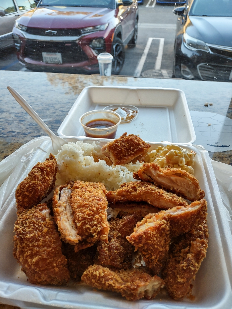 Read moreThere's two main reasons I would go to a Hawaiian barbecue shop: The BBQ chicken and the katsu. I got the double chicken mini plate, and it was just the right size for me even though I'm a bit of a big eater. Good thing I heard about the big portions beforehand. It comes with a few big pieces of each chicken, mac salad, rice, and shredded cabbage (which oddly reminded me of Japanese restaurants). A review I read earlier said that as far as mac salads go, L&L is the best. I'm usually not a fan of the stuff (tends to be bland), but I polished it off. The katsu was nicely crunchy, if a bit overseasoned, and the BBQ was juicy but a tiny bit underseasoned. I've read that the sauce might be watery, but when I dunked a piece of katsu in it, it was quite good. Sweet, sour, and a hint of chiles. The texture could be a bit thicker so it clings to the food better, but that's about my only complaint with it. Next time, I'll try some musubi. Service was all right, but I wasn't expecting sit down restaurant...