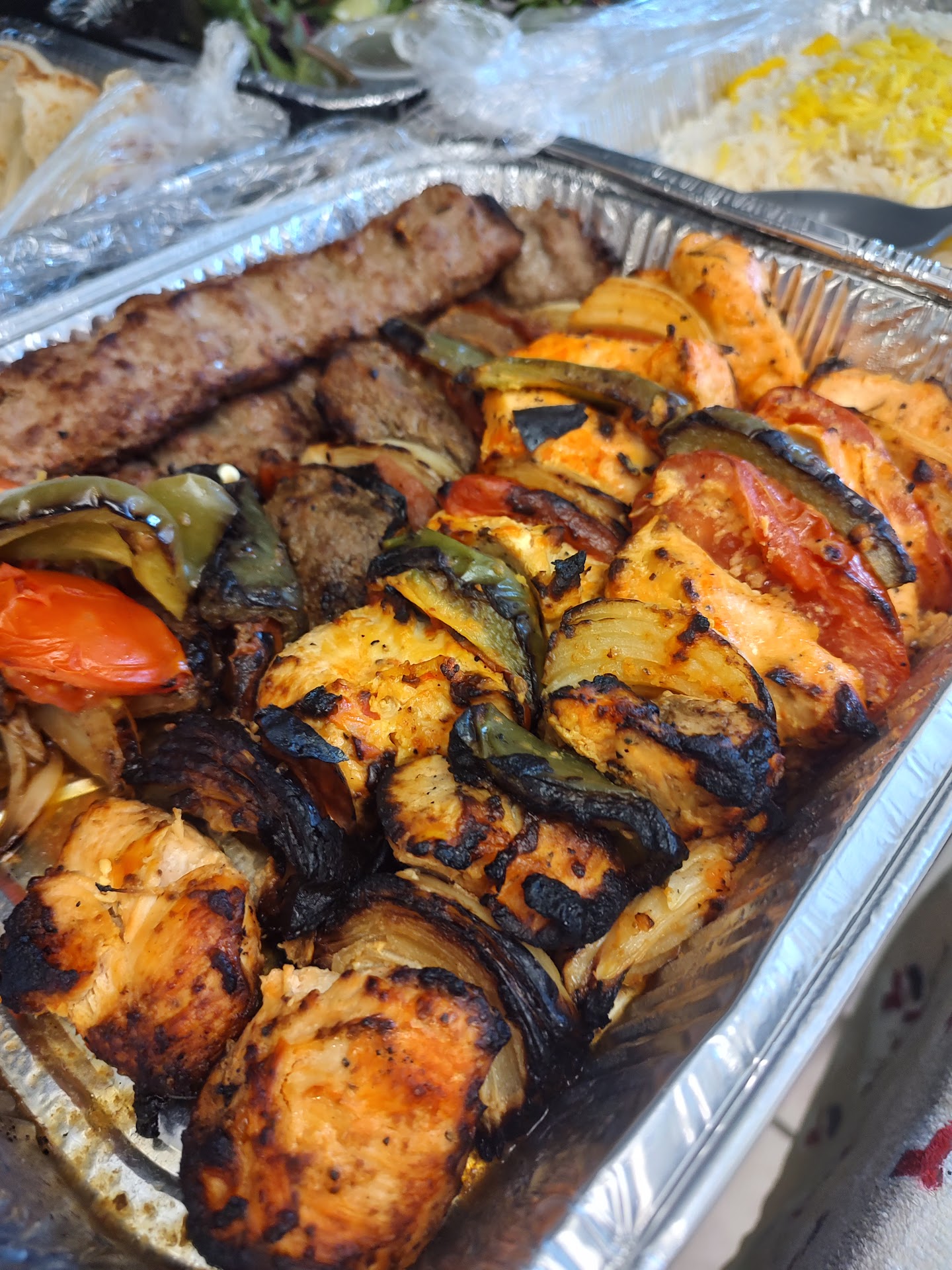 This restaurant accepts too many take out orders in expense of sacrificing people who dine in ! The managers in this branch are treat customers who dine in as if they’re their enemies .If customer expresses issues regarding food quality or portion instead of correcting their chefs and kitchen , they fight with customers in front of other people and roll their eyes away.My daughter ordered their salmon kabob with salad and rice .When she was flaking her salmon , she found 2 fish bones which she could have swallowed and end up choking and heading to hospital .Thankfully God forbid this from happening to us and she found them .Aside from this , one the pieces out of 5 was very old as she could tell by texture and taste .It seems they mix their old meat with fresh ones in the skewers to have people consume the old fish so they wouldn’t have any waste ! Also one of her pieces was totally raw in the middle .So out of 5 , one was old spoiled fish ,one was raw and 3 were average quality without any taste .My daughter’s salad had big trashy dark green outer leaves of Romain and few very thin slices of avocados that were brown.In their advertisements in social media and in their website what they display is a salad with inner pale leaves of Roman lettuce that are fresh and crunchy with half of fresh looking avocado but what they actually serve to customer is nothing similar to what they advertise.My son’s brown rice was old and very oily .I could tell they had reheated the rice in oil .Aside from quality issues which can happen in any restaurant , the major issue in this branch is their managers and chefs .Instead of improving their service to keep customers happy to come back , they treat customers in a way to feel not happy to dine...