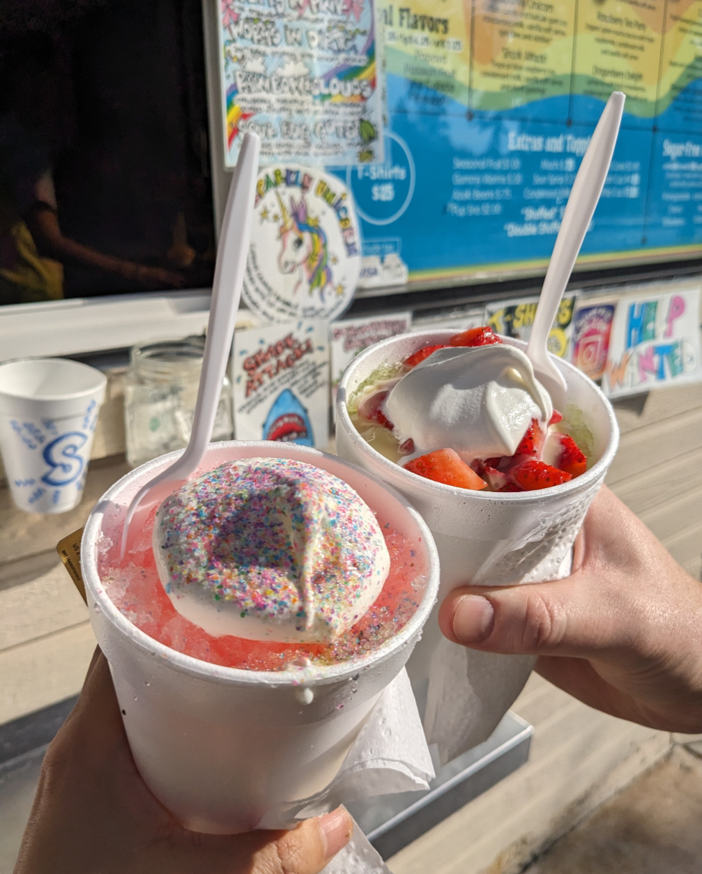Read moreThis has got to be the best snow cones I've ever had. I've driven by many times and didn't think much of it but decided to take my little ones one hot summer day and let me tell you... It was to die for. I got the guava flavor with some whip stuffing and I instantly melted. My kids got Tigers Blood as well as the Sparkling Unicorn and they agreed with my excitement. We've been back at least once a week this summer and can't wait to go again. They have so many flavors and we're excited to try many more. If you're in the area make sure you stop by for the best dessert around. You...