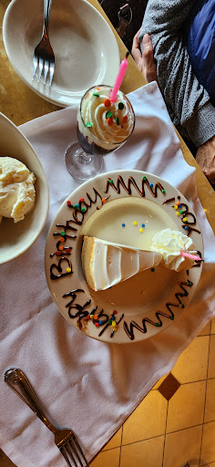 Had a nice late lunch after my wife's doctor's appointment. The hostess was sweet and let us to a nice table near a window. Our first server, Logan, came by and took our drink order of two Don Julio Blanco with pelligrino and three limes muddled with mint. We also ordered what they call a little house salad, which is very generous and, of course, tasty. Logan had to go home, so Saul, our new server, came by, and he was amazing. We also got bread from Logan before he checked out. My wife ordered the Boom Boom Shrimp and Chicken, and I had the Madeira Chicken plate. Both entrees were good, and we had a nice time chatting. Today was my wife's birthday 🎂 so we shared cheesecake and ice cream, and I sang to her for her birthday. The ambiance was peaceful and positive. Highly recommended.