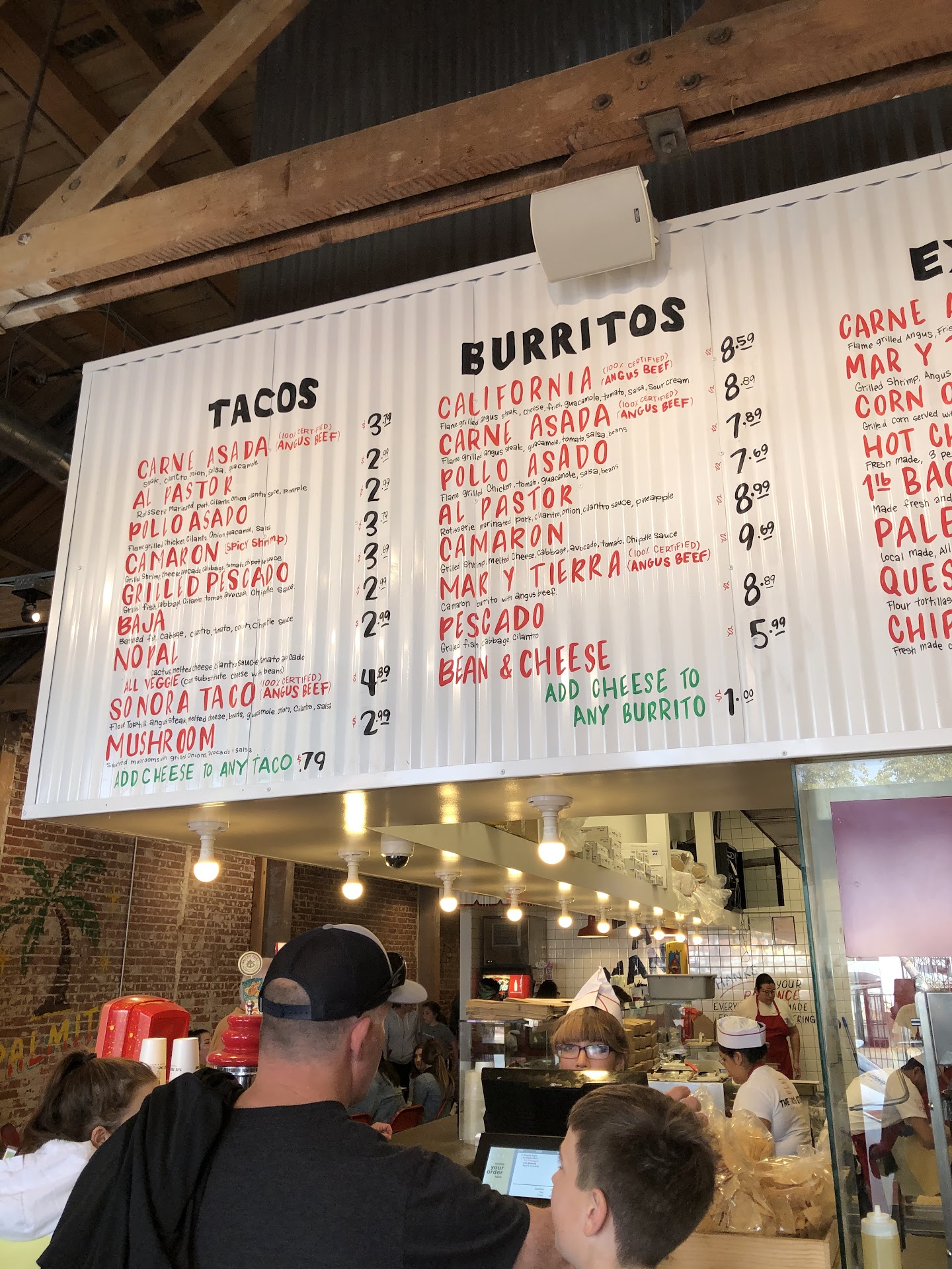 The quality of the food was hit and miss. The corn on the cob was half green, which was quite unappetizing. The most alarming part of our visit was the pork al pastor. The meat on the trompo was completely raw, and when I inquired about it, one of the staff members claimed that it was meant to be like that before cooking it when an order came in. Having eaten al pastor tacos for decades, I know that the meat is always cooking and broiling on the trompo, so seeing it raw was a red flag.
