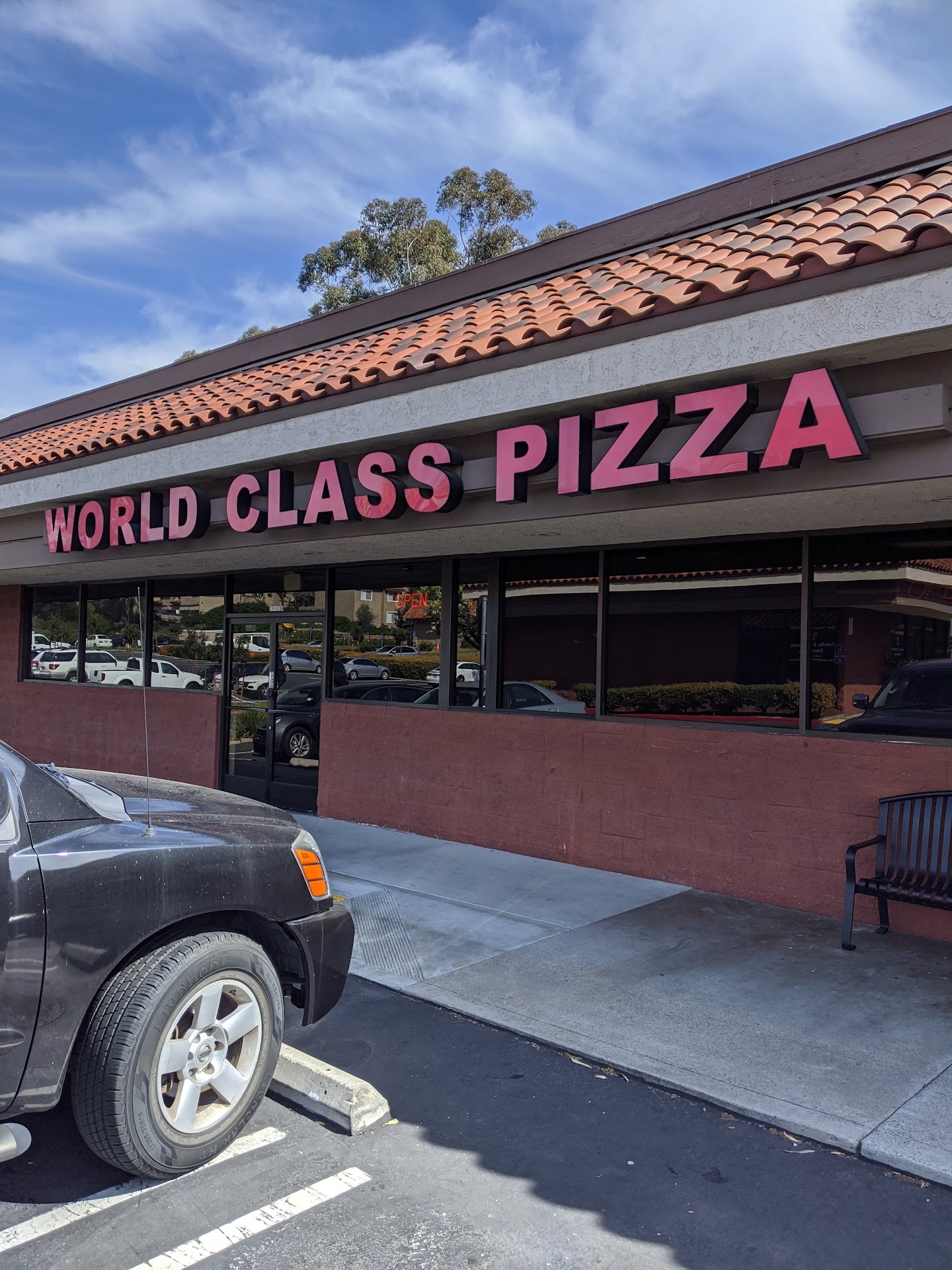 The inside of the store is just a counter to order and a handful of seats. Most of the seating is outside which is why I usually recommend people order to-go from this establishment. Run by a dedicated individual who operates the establishment 24/7, it's the perfect spot for late-night cravings or a quick snack. Overall, World Class Pizza has some solid pizza that is competitively priced. Also it's available at all hours of the day making it one of the more convenient pizzerias in town. Check it out and see...