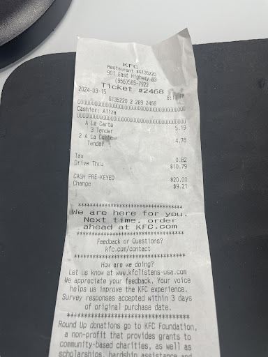 Read moreOk. I Usually don't post negative reviews, but. We ordered two 3 piece meals and the make employers gave us one meal then told us Thank You and closed the drive thru window. We waited for him to come back and he did and we told him he forgot to give us one of the meals. When he gave us the meal I checked and they had fries instead of the coleslaw as ordered. We told him and he told us to give him the meal back. As we gave him the meal back, the box was open and he just started grabbing the fries from the box and touching the rest of the food. I then advised him to forget it and to give me a refund for one of the meals since he touched it with his bare hands. He ignored us and gave us the meal back and closed the drive thru window. We waited for him to open the window and he did and we had to ask him again for a refund for one of the meals. I got my refund and left. We will never come back to this KFC with that employee working there. KFC...