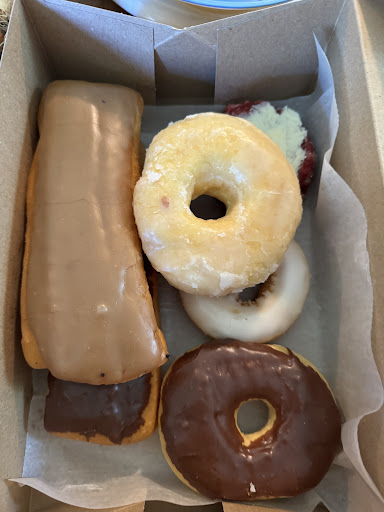 Donuts were ok, service and atmosphere of the store was awful. We came in a few minutes before they closed to grab a few donuts and the entire place REEKED of bleach. Nobody greeted us, both the women were on FaceTime with someone who they had propped up on the counter. Sounded like they were complaining when we came in because they were closing in 5 minutes. When my partner asked for coffee the woman behind the counter said nothing and then the young woman behind her had an attitude and said âweâre done making coffee!â to which the woman behind the counter responded by laughing and was like âI wasnât going to go thereâ âŠWe assumed theyâd have some made already, itâs not a big deal they didnât have any, but her attitude was pretty off putting. It seemed like they were trying to leave promptly at noon, hence why they apparently started cleaning the entire shop with bleach well before closing time, which was incredibly nauseating.