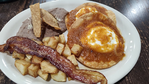 Read moreThe huevos rancheros are good and for $8+ you get 2 eggs, 2 fried corn tortillas, refried beans, potatoes and bacon.
