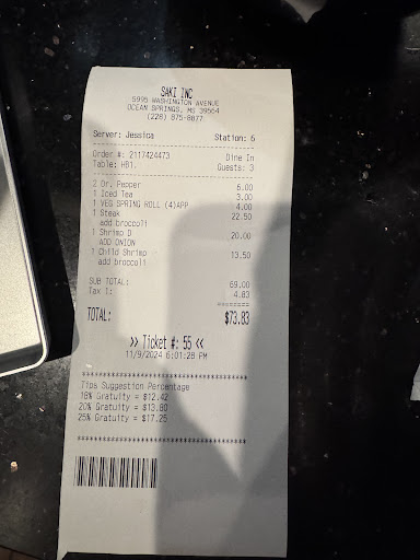 Ā Ā Ā Read moreFood was ok, but experience was more than lacking. Very disappointing when you choose a restaurant and a habachi grill table in part for the experience. Just a cook in front of us at the hibachi grill. Our chef showed No real interest, no talking, no questions whether we were celebrating anything,(which we were celebrating my husbands bday), no interaction with the grandkids. No fun, no tricks, no jokes, no onion train, or pounding heart of rice, or tossing of a shrimp or two. Nothing, no thank you for coming. Just does anyone need to go boxes. We gave him a 20% tip anyway, then afterward was thinking why did I do that?, he really didnāt do anything to offer any exceptional customer service or anything special at all, as a matter a fact it was a let down for all of us, even the girls who were old enough to know what a fun hibachi grill experience is supposed to be. The service and experience was a 2-3 on the scale of 1-10, and the food was average at a 6-7. Sorry to say Nothing to...