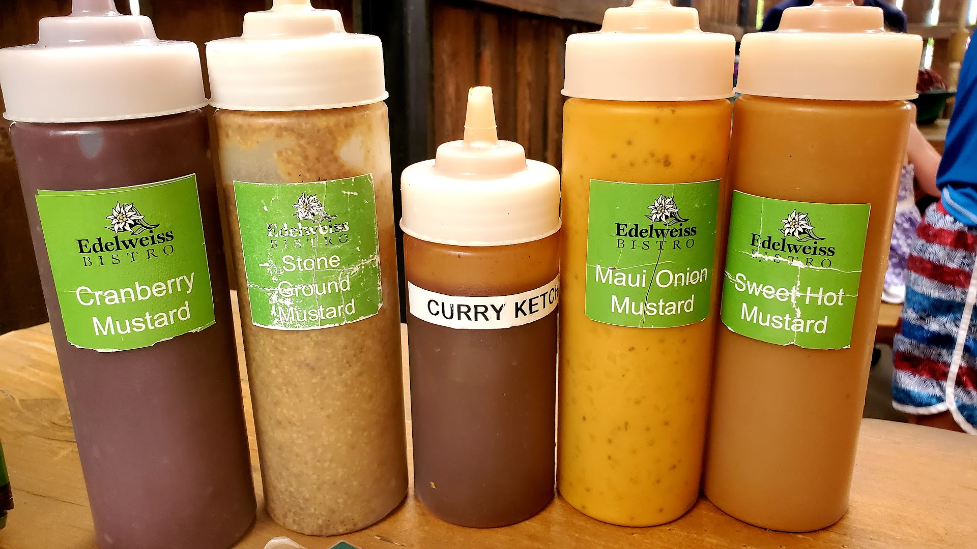 For entrees we got Brat in a Bun and Brat & Sauerkraut. Yep, we love brats!! Both were delicious especially the bun that the brat was in. Surprisingly we had to ask for the 6 sauces (which thankful I had read about online and knew to ask for).