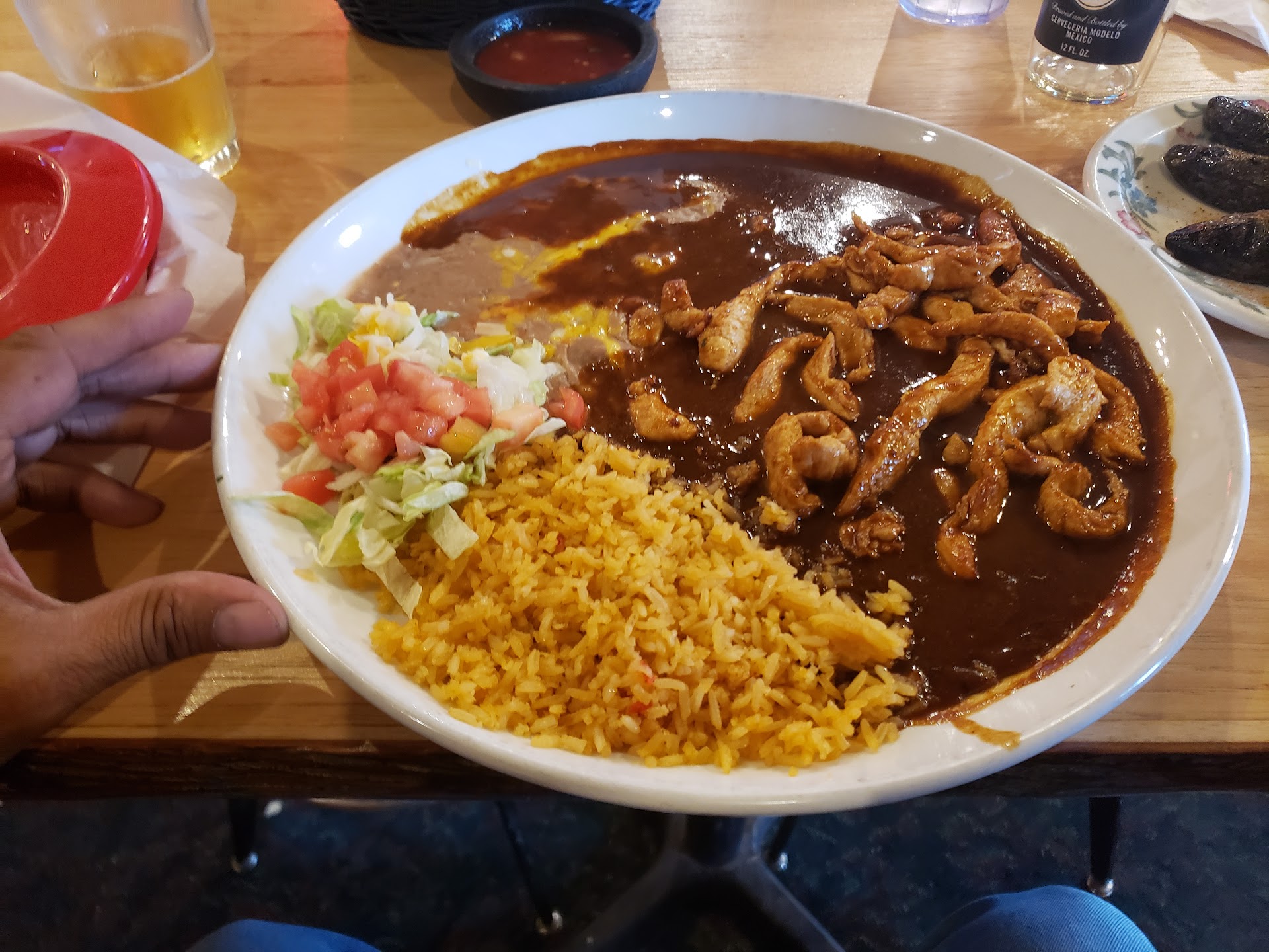 Literally favorite restaurant ever!!! Besides the fact that it is a bit pricey, I cannot even describe how good the food is here. Totally addicted is a huge understatement! If I could only eat food from one place, for every meal, for the rest of my life this is it for me, hands down. The staff here are amazing- and true story by the way- when I was pregnant with my youngest daughter Fiesta was my biggest craving. We came here so often the staff remembered us every time and knew exactly what we wanted before we even said a word, even when I called in to order ahead for pickup lol On top of that, the environment is warm and welcoming...although it can often get a bit too crowded...there is a full bar (the other Fiesta at the location across town, on Brooks I think?, does not have hard liquor, last we were there) and a casino attached for some after dinner fun. Oh and we ALWAYS order extra chips and salsa to go because they are crazy good, you can even ask for something spicier if their salsa isn't already hot enough for you. Just a tip: try adding some of the salsa to your main dish or even just the rice and beans! Might sound weird but we found mixing the leftover beans, rice, and salsa makes an awesome chip dip to finish off the basket they give you. Yummmmmy!! Anyways, I'm really wishing I didn't just review this because it's all I can think about now but I'd highly recommend Fiesta if you're in the mood for some Mexican...