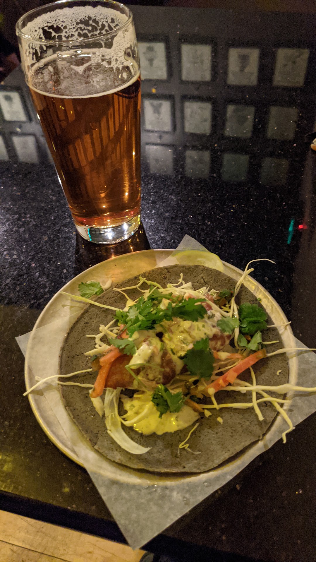 It's a small but upscale tap room in the hip district of Missoula. Black marble countertops and dark wood at the bar, subdued lighting and a rogue's gallery on the wall of the last 40 or so of the microbrews they have lovingly prepared. I tried the current Oktoberfest and oatmeal stout offerings and both were true to style, fresh and crisp and excellent. I also tried some of their Street tacos, which are outstanding, especially their special of the evening, a pork taco with habaneros that lingers warmly on the mouth and throat.