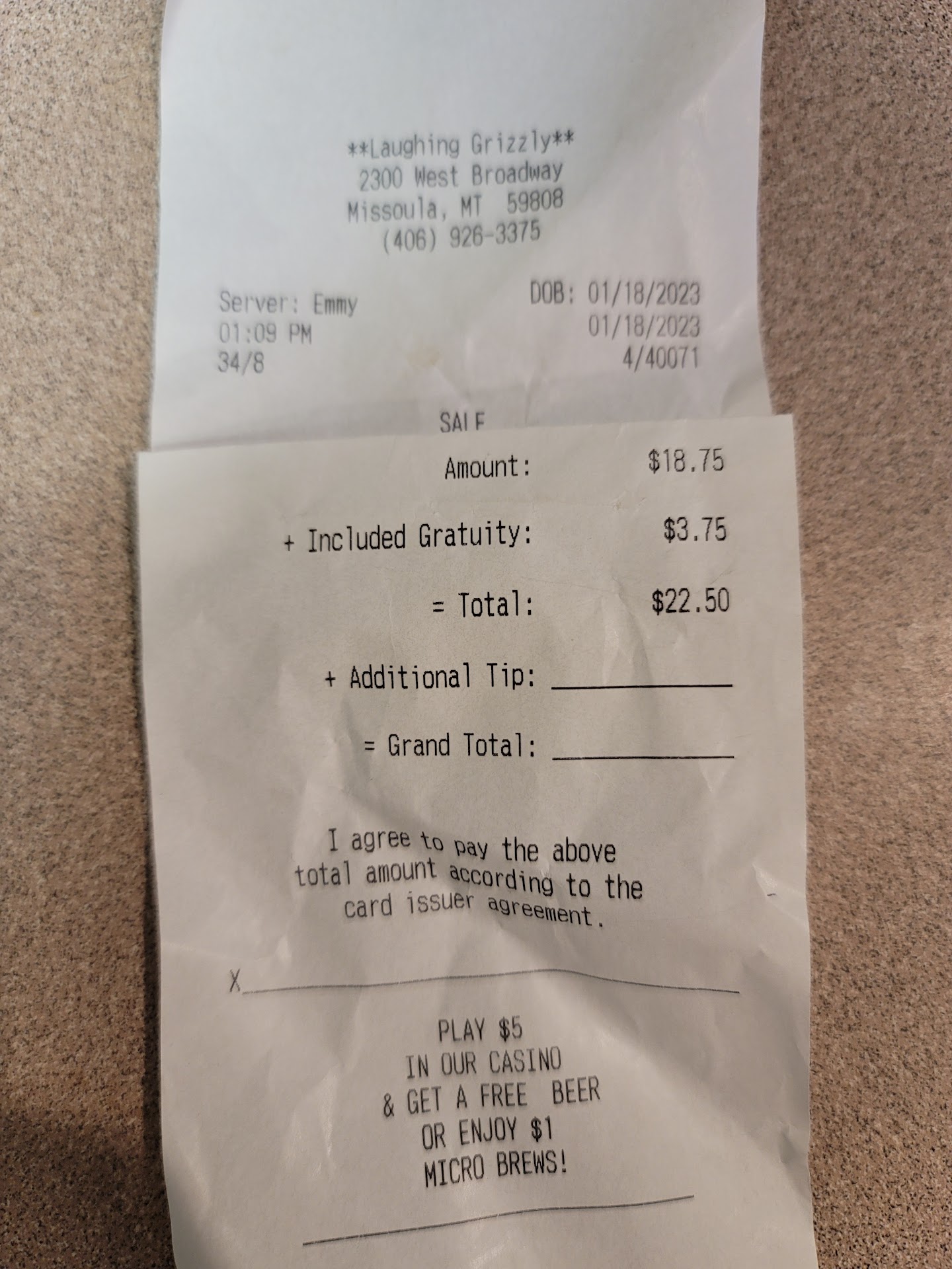 Read moreThe "Laughing Grizzly" isn't winning any Michelin stars, but it's a solid, reliable spot for anyone craving classic diner comfort with a side of hangover-busting libations. Let's be real, sometimes you just need a mountain of crispy hash browns, a perfectly greasy burger, or a stack of french toast, and this place delivers. The portions are generous â you definitely won't leave hungry.