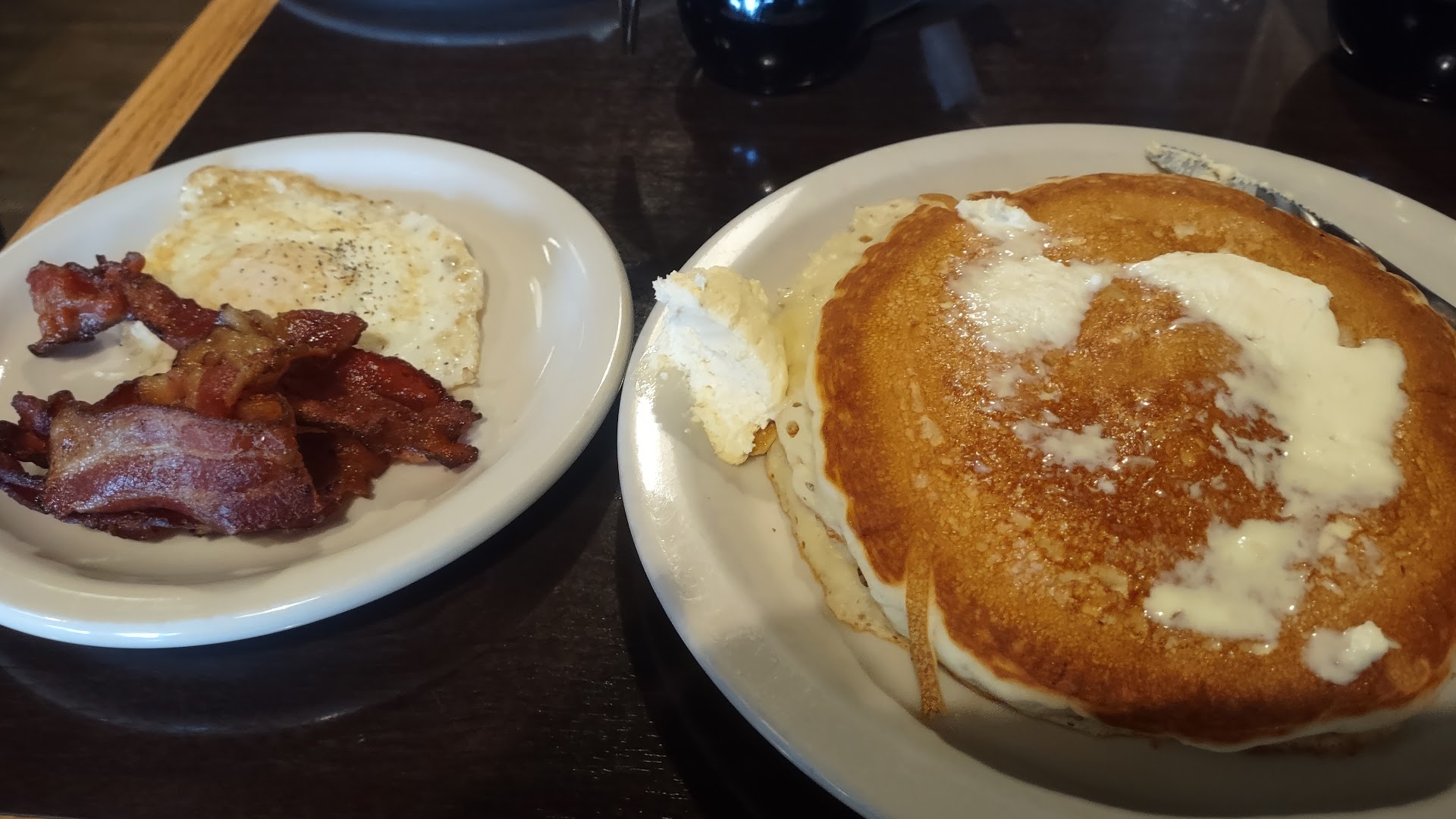 The food was honestly just terrible, totally inedible. We expected the food to at least be decent, considering all the awards they have plastered on the walls and the high rating. We did not finish our food and took it home in a takeout box, but we threw it away when we got home. That's how bad it was. So, let's get down to why it was terrible: -Coffee tasted like cigarette ash, it left a bad taste in my mouth and I would say coffee from a gas station is leagues ahead of whatever they served me. I do not exactly have high standards when it comes to coffee, as I drink instant coffee at home which tastes better than Paul's coffee. -My country fried steak was rubbery, and tough. It was flavorless as well, which could be remedied by adding salt and pepper and hot sauce, however, it was LEGITIMATELY RUBBERY AND TOUGH, as if it has been frozen for a year and overcooked once thawed. Was totally inedible! Disgusting! -The hashbrowns were actually flavorless. They needed salt, but the cook on them was fine. Could have been a bit crispier. -I can't have eggs, and they did not offer me a substitute for the eggs and instead made me pay full price for less food, instead of offering me something like extra hashbrowns like Ruby's does. -My husband ordered pigs in a blanket. He said the pancake was good, but the sausage was tough and rubbery. I had a bite of his sausage to taste it, and indeed it was very chewy and tough and rubbery. The actual flavoring inside the sausage was good, but it was so chewy and rubbery. Why? Was it old? Frozen? Overcooked? -The pancakes were the only thing that tasted good, but it's pancakes. It is sweet bread. Kind of hard to mess that up. -The biscuits themselves tasted good, they tasted like fresh biscuits. But the gravy ladeled over them was TERRIBLE. It was obviously instant gravy, not housemade, and there was NO SAUSAGE in the gravy. You expect actual bits of sausage in the gravy when you order biscuits and gravy, but it was clearly straight from an instant powder packet and they don't even dress it up to try to cover up the processed instant taste. It tasted like Waffle House biscuits and gravy which is pretty low quality, but at least that costs 5$ and not 15$. Unironically the biscuits and gravy from Town Pump tastes way better. -Meal came out to 50$ for a chicken fried steak meal, one pancake stack, and one order of pigs in a blanket. Way overpriced for instant, overcooked, frozen food. -We had no real server? For some reason, four different people were seeing to us. A different person brought drinks, multiple people checked on us, and a different woman took our order and brought our food. Who was our server? Who is going to take the tip? All in all, we were extremely disappointed with Paul's Pancake Parlor. I can only imagine they are running off old clout when the food used to be higher quality, they've most likely let quality slip while also raising prices, and people only go to eat there out of habit and lack of options.