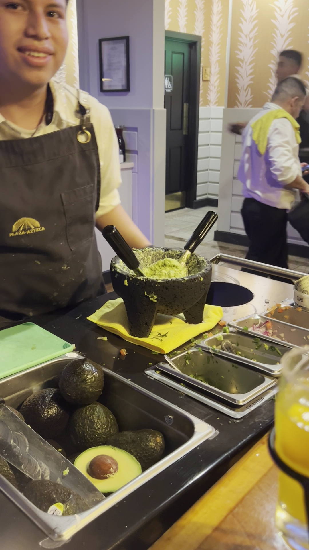 The atmosphere was fun, festive music playing and everything was clean looking. There was a little bit of a language barrier with the staff but that's expected and was OK. We were given chips and salsa and then a young man showed up with a cart and asked if we would like guacamole. I thought this was their "thing" and said yes. He made it right there on the cart and it was a cute experience but was a bit bland. After receiving our menus I noticed the "Tableside Guacamole" as an appetizer for $12. I really don't like the fact they seem to trick you into purchasing this but let it go as it was a special family dinner. But if it costs money you should state that when you offer it. (It's on the menu so if we wanted it we would have ordered it when we got the menu not before.) We ordered the Beer battered fish tacos, birria rolls and some alcohol. The fish tacos came grilled not battered and were a bit bland as well. The birria rolls were fantastic but a bit overpriced for the portion you get.