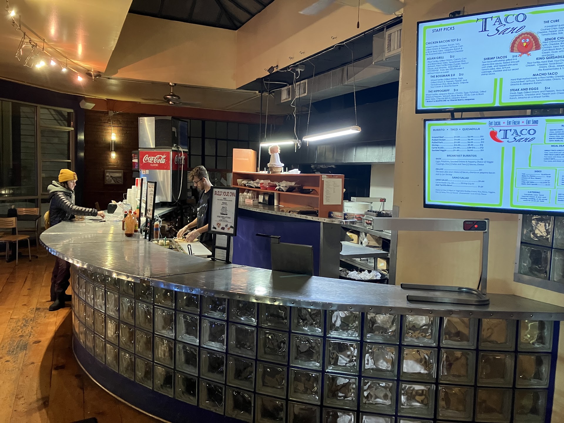 Read moreWith multiple preconfigured burrito options and a large TV screen menu on display, I had a top notch burrito shopping experience here. Seriously, too many choices is mentally taxing — the “staff picks” burritos are all you need. I picked the one I wanted, and my burritomaker person went and made it and didn’t have to ask me any questions about burrito condiment details that i could really care less about. I came here to pick out some kind of burrito and to get that burrito in my stomach. I’m not the burritomaking expert, so I dont know what’s best to put inside it — i hired you to do that and I trust your judgement. Was it good? Yes, it absolutely was. But more than anything I’m delighted with the low-friction ordering experience. Also, the location is great and the building is historic. You could take your burrito to go, but I stayed and ate it here. Abundant seating. Again, my objective was to get burrito and to get it in my stomach. So once again, this process was nicely streamlined for me at Taco Sano. Note: the free water cup, bottomless, was easy to access. Need water in order to wash down burrito, that is a must. Note also: great selection of hot sauces to spatter all over your burrito. I highly recommend the Ghost Pepper Wing Sauce; it’s saucy and habanero hot. Much gratitude to the person who made my “Bossman” burrito tonight. Could not have asked for any better....
