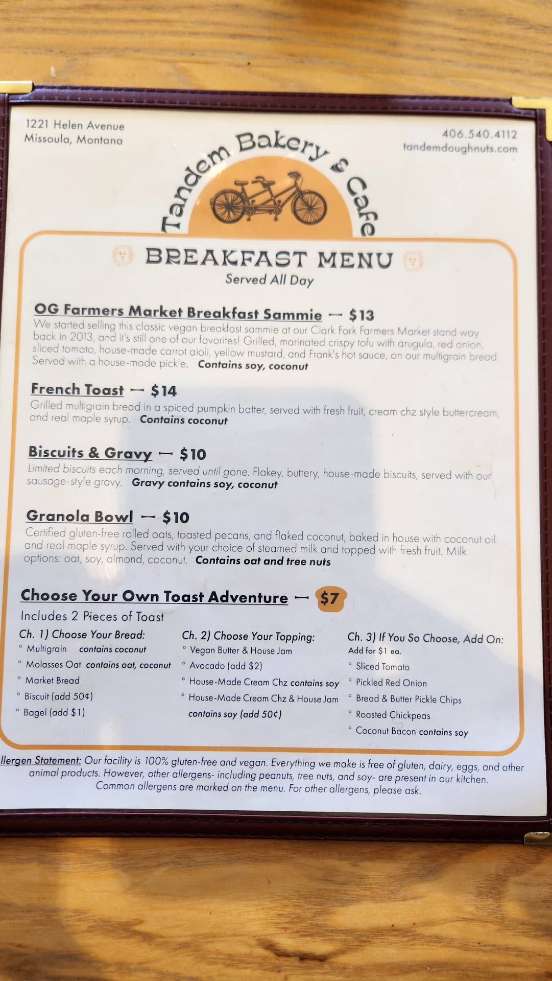 My family and i are visiting from out of town and my wife has celiac disease so we were really excited to try this place out. The food was excellent but Iâm only giving two stars because our experience was completely marred by the service we received from the tall cashier with a big beard and glasses (unfortunately did not catch his name). He was incredibly impatient with each member of my party and when I went back up to the counter to ask for a latte, he rolled his eyes and goes âsmall? Large?â as though I were an idiot for not specifying in the first place. I truly wish I had at that point said never mind and walked out, not giving him another dollar of my business. I donât know when weâll be back in Missoula, but I can guarantee I wonât be returning to Tandem, all thanks to his poor attitude and awful customer service. After posting this review, Iâm stunned to discover several other customers who have posted reviews with this same experience. Management gave a piss-poor excuse that âeveryone has bad daysâ or âlives outside of work?â Letâs be real here - if I spoke to my clients like this employee speaks to so many customers, I wouldnât have a job. Itâs sad to see that management clearly does not care that he is costing...