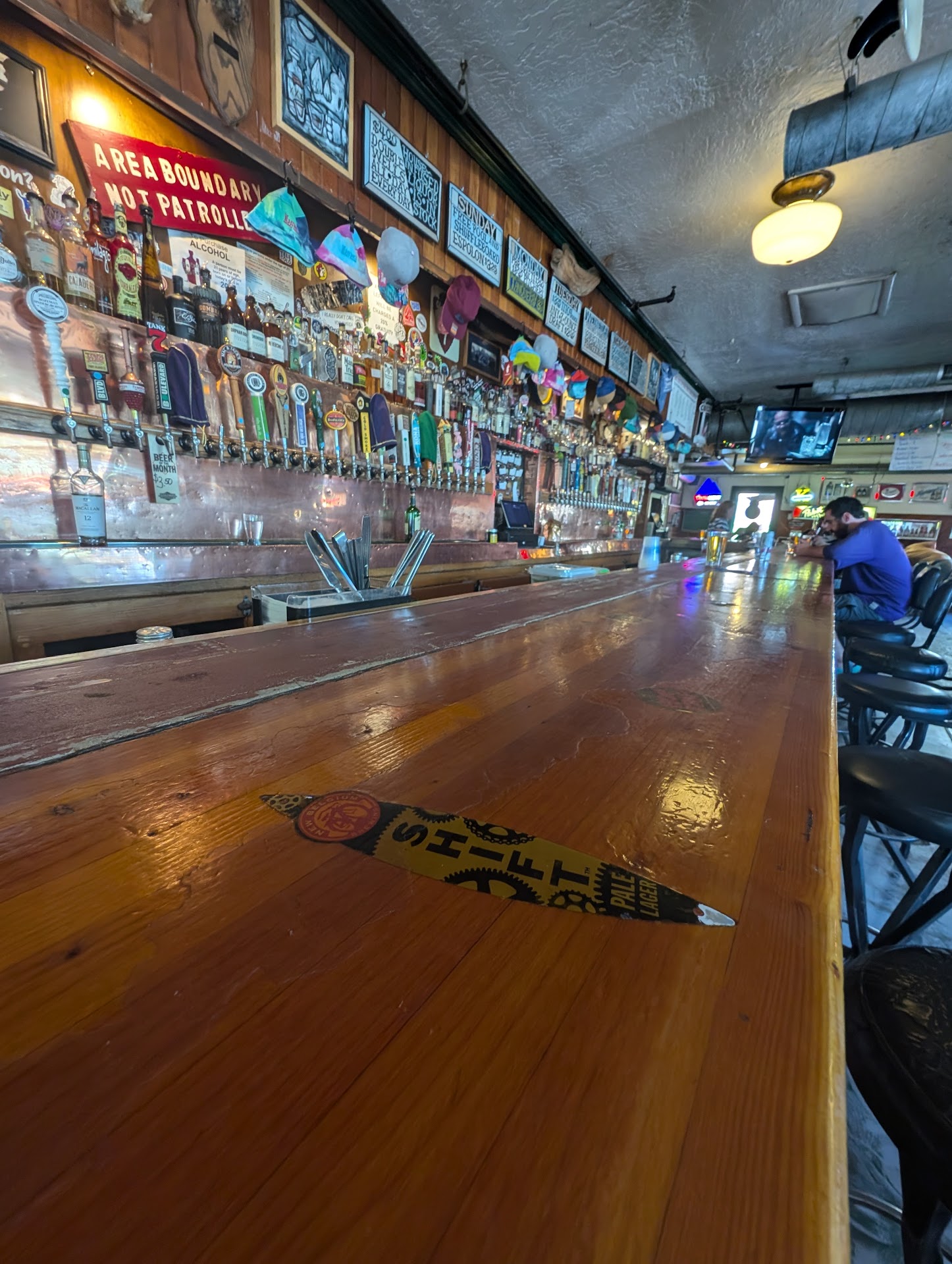 They don't serve food here, but they have one of the best, if not the best, bourbon and single malt offerings around. Not to mention dozens of beer on tap. I think someone told me fifty different beers.