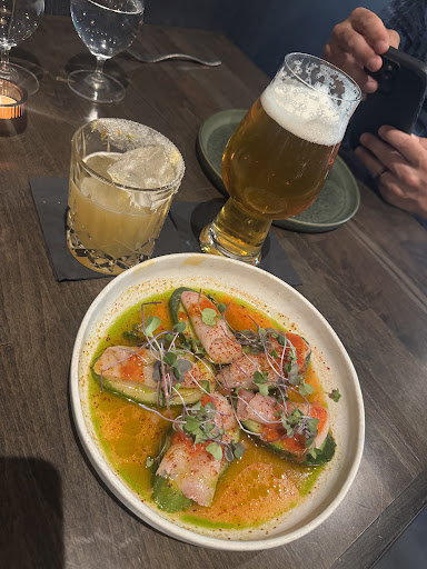 We indulged in a variety of dishes: the steak, cooked to absolute perfection; tender lamb; flavorful mahi mahi; a fresh asparagus platter; and a delicious beet and burrata salad. The aguachile was a refreshing, vibrant surprise, and we enjoyed sampling eight of their handcrafted drinks, all of which were expertly balanced.