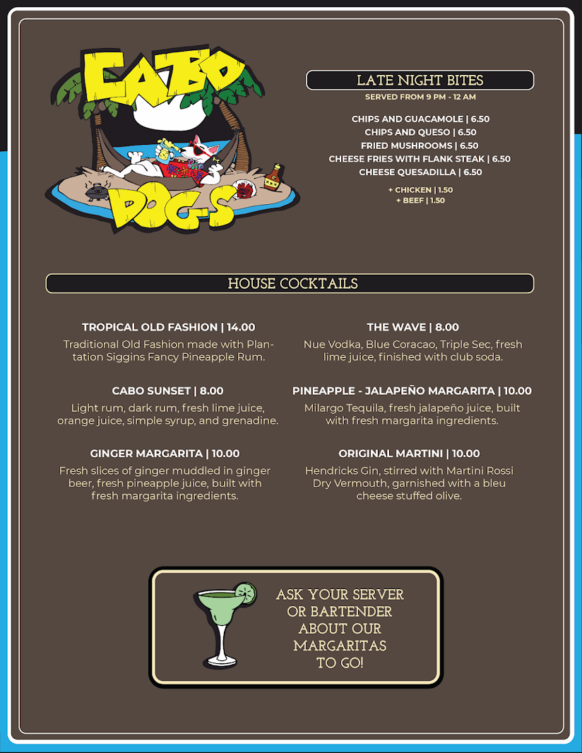Walking into Cabo Dogs Friday night, I enjoyed the low-light setting and the patio setup. Just one wrong thing, the service experience for me was horrible. I went to the bar and waited 5 mins only for the bartender to look at me and quickly turn away from me to pretend to look busy, that was strike 1. I went out to the patio to take a smoke break, giving the staff the benefit of a doubt that maybe they were just tied up. Went back to the bar and talked to a server. I ordered a bourbon and coke which is one of the easiest mixed drinks you can order at a bar. 5 mins passed by and I saw (4) women who were employees by the bar area not making drinks just conversing with one another. I went to the same server and asked for a update about my drink. She told me that there was only (1) licensed bartender, even though there was (3) other employees behind the bar, confusing to me. The server told the same bartender with the tattoos on both arms who ignored me the first time to make the drink. The bartender with the tattoos looked at me and rolled her eyes. That was strike 2, which I decided Iâm leaving no tip. Strike 3 is the cherry on top. The drink was finally delivered to me but in a styrofoam cup. The cup looked as if it was reused with bite marks on it...not cool...the night staff needs better management and at least (2) months of micro management. The excuse of (1) bartender with a small crowd of customers is no excuse to make. I do believe in second chances and I heard the morning staff is professional, so a few bad employees should not impact the overall business. I love to Missouri city business prosper and I know yâall...