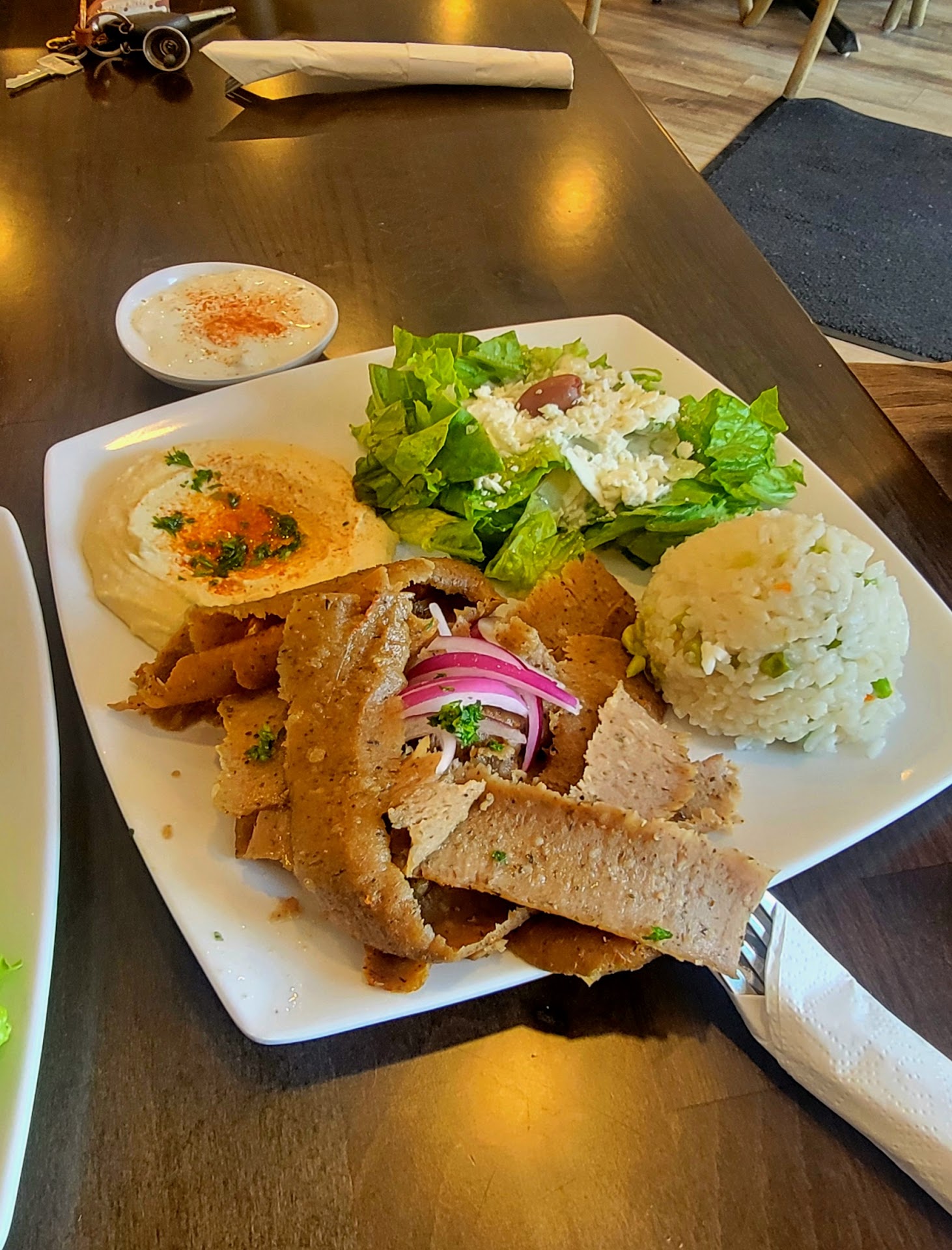 Read moreFood is average and a bit over priced for what you get. Shawerma I tried was over salty due to some pickle or maybe extra salt sprinkled on it. Shawerma it seems is not off a rotating vertical skewer and didn't taste like one either. Hummus was a bit too thin and runny probably made in a blender with added water to save time and effort. Kafta kebabs and rice that came with it was good but again I feel it is over priced. This is probably the only Greek/Lebanese restaurant I have visited that did not have olive oil on the table and also didn't have Tobasco or any hot sauce. But the worst thing was that I was charged extra for a very small pot of chilli sauce. I sincerely hope this restaurant improves its prices, menu and not charge for basic condiments and seasonings. Otherwise I am afraid they won't last for long with the current product they have to offer. Service and ambiance is good and the only positive I carry from this place today. Also I asked if the food was Halal and our server said it is. I am not sure though as I didn't see any Halal certificate. P.S: I am happy that the owner responded back and noted my comments above. Being born and raised in Middle East and lived in Cyprus and Turkey, I ofcourse can tell a good authentic hummus and Shawerma from average one. My criticism above is to point out definite areas of improvement than can easily be done atleast from quality and authenticity of food and what other similar restaurants are offering in Houston. I didn't try all their food on the menu and looks like some of their other stuff is quite good and I hope to try those and give my honest review again, hopefully...