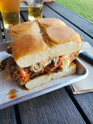 Food - surprisingly good. This is a sliders/dogs/breakfast burritos (didnt try them yet). We ordered the Brat which was delicious. Good snap, nice tang, toasted bun, no complaints at all and would order again. The bbq burger slider was good. The flavors were ON POINT but it was a little dry in the mouth which just means, give it a little more sauce or a pickle, but actually really good. The Ohana Chicken Slider - seriously, so very good. Juicy, umami, crunchy, salty, sweet...touched all of the bases and my leftover I took my 82 year old mom was declared the best chicken slider she has ever had. It's really good. Fries are seasoned and crispy, onion strings were a disappointment, because that is actually a favorite of mine and will order them anywhere I find them. The oil was too hot to cook to batter vs the onions so delicious crispy batter/scorched onions. They will figure it out.