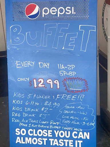 Drinks are fairly priced, and they even offer a free pint of Real Ale Texas Light during buffet hours and happy hour (3–6pm). It’s also family-friendly, with kids 5 and under eating free and only $4.99 for ages 6–11.