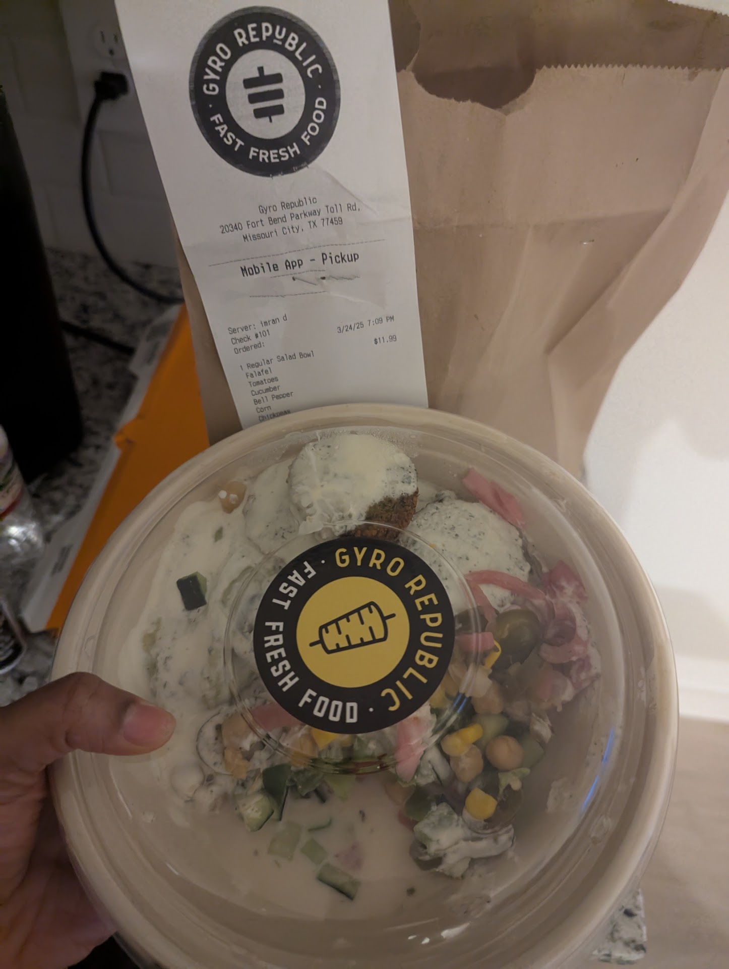 I had been to this Gyro Republic location a few times during the day and had good experiences, so I decided to stop by again late one night around 10:30 p.m.—thinking it would be a better option than fast food. Unfortunately, this visit was completely different. When I walked in, no one was at the counter. One of the staff members was sitting at a table eating with a group of friends who seemed to be hanging out there. On the grill behind the counter, there was meat sitting out uncooked, and several of the topping trays were nearly empty. I ordered two salad/rice bowls, but was told they only had enough salad for one. The employee literally scraped the bottom of the container to get every last bit of lettuce, and it still didn’t fill half the bowl—so she just filled the rest with rice. The frustrating part was knowing they almost certainly had bags of salad in the back, but she didn’t bother to restock. She also told me there wasn’t enough gyro meat to make both bowls, even though I could clearly see plenty stacked behind her on the grill. Several other toppings were also nearly gone, and she scraped just enough to barely complete the order. It was obvious she didn’t want to step away from her friends to properly prepare food or replenish supplies. When I got to the car and explained to my husband what happened, he told me to take the food back. I didn’t—but we regretted it the next day when both of us got sick with stomach cramps and diarrhea. Sadly, we haven’t been back since. What could have been a solid late-night option turned into a disappointing (and...