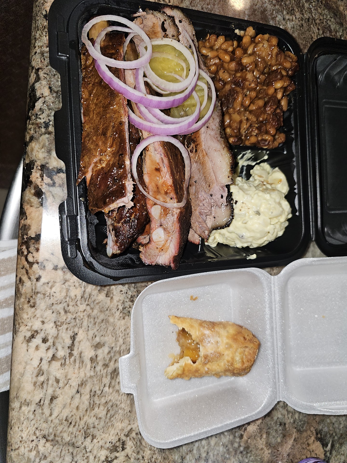 Read moreLet’s start with the positive. The beef ribs were falling off the bones with excellent seasoning. The ribs came with two sides. The greens were so good I drank the juice and the potatoe salad was delicious as well. I really don’t eat potato salad but it was off the chain. I also ordered the brisket sandwich but I only received one bun for the sandwich. I ordered the famous fries but they were not cooked all the way. They tasted like they were almost raw. Then we put them in the air fryer at home and then they tasted as if they had no seasoning. If the aforementioned foods were cooked properly and bun for the sandwich had been given, I would have given them a 5 across the board. However, I plan on going back but checking my order...