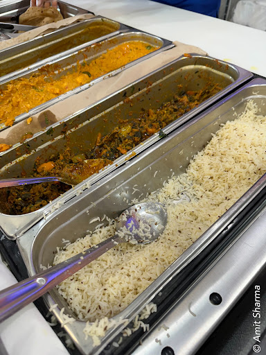 Basmati rice - excellent Sauce- very runny, tasted sweet sugary. Was mentioned at Daal Vegetable side - peas and Zucchini. Under cooked. Very runny, the sauce , spice did not cook well together Roti - was a joke. Premade tortillas warmed up and basted with butter? Tasted funny Other items - A sweet cube, crunchy chips, spongy cubes were borrowed from the near by store. Yogurt with boondi - was very sweet. Too much sugar in this dish. Green chilli pickle canned. Also from the store. This does not make up a Buffett. No water. Or chai is included in the buffet