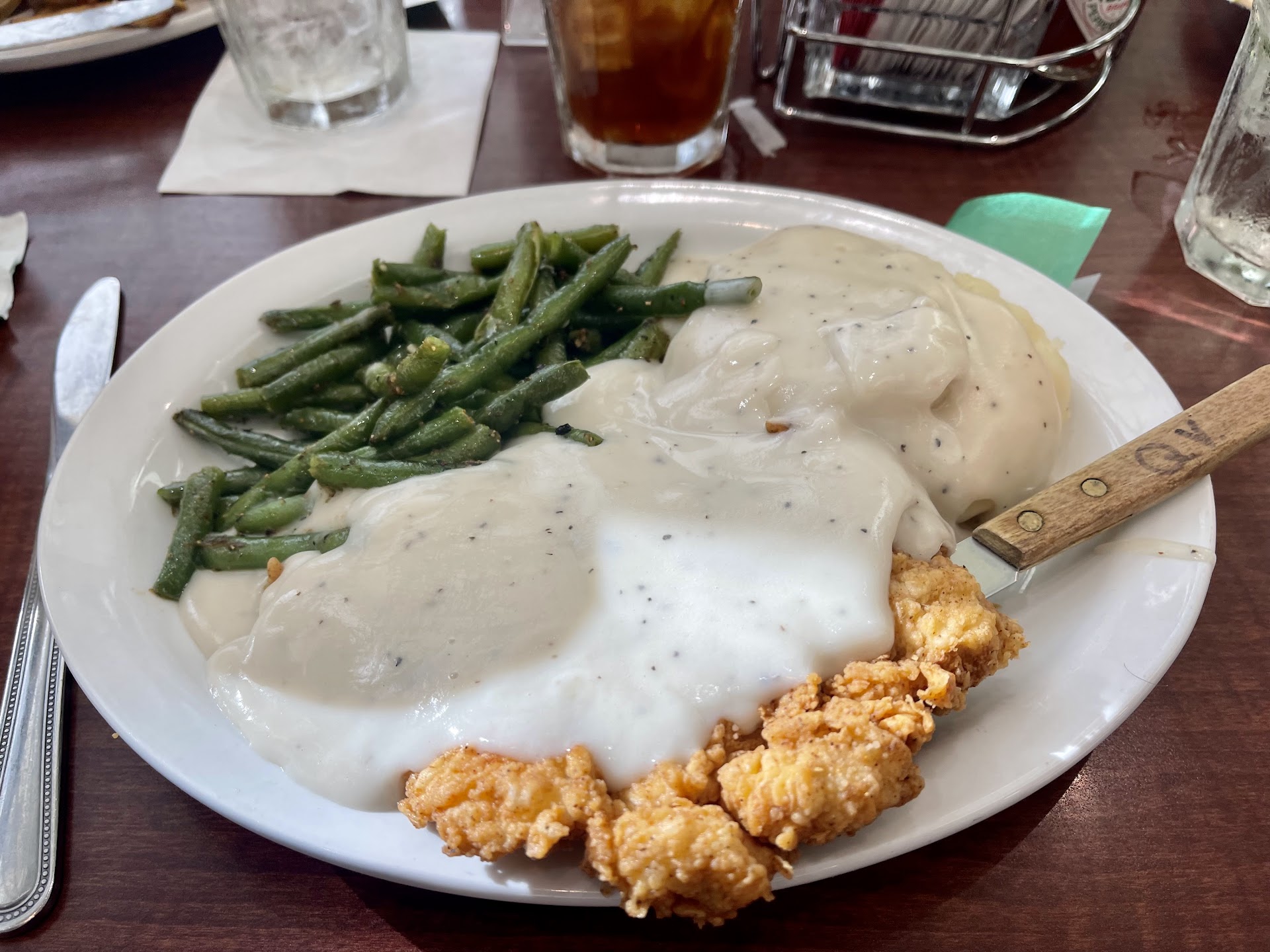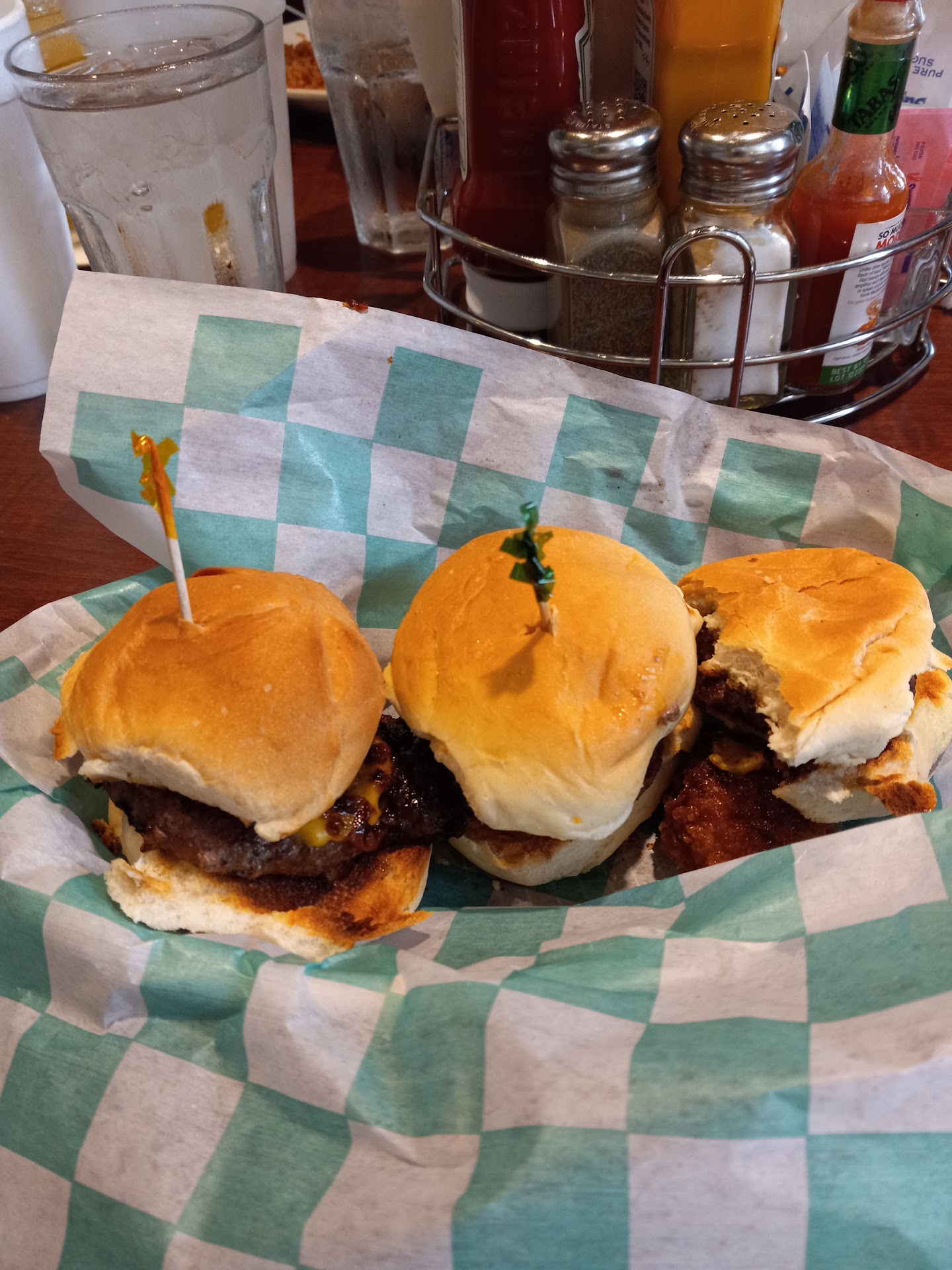 Well....good news and bad news. The good news is that the food quality seems to have really improved from a year or two ago. Today it was outstanding, which is the reason for my review. All three of us today loved our food. Onion rings: among the best I've ever had (they were really, really delicious, but still can't beat the beer battered rings from the Cheddar's at Beltway 8 and Westpark, which sadly has been sold back to corporate and is not as good as formerly. Those are the best I've ever had). Off the menu grilled fish with creamy cajun gravy: Excellent and very yummy! Steamed broccoli: somehow had a delicious flavor. Coffee: Good. Italian something or other sandwich (like a French Dip): Good, on good chiabatta bread, too much meat for our liking and had to pull some off (oops. man I should not say that here...restaurant management please ignore that!), extra charge mushrooms: yummy, special request bell peppers but no onions: Delightful on a special request that many will not satisfy or get wrong Au jus: Great. Different than the normal au jus, it had a different flavor, not like the one you get from e.g. Arby's. This one had more body and tasted like fresh roast beef drippings, more like something you would get from a home made Thanksgiving dinner, however it was (thankfully) not greasy. Really pretty good! Chicken salad stuffed avocado with a side of fresh fruit: This one got the respective diner ecstatic. She LOVED it. She spent 10 minutes posing for pictures with the plate and having therm sent back home to family in the old country. Avocado is tricky to work with, not most restaurants will have it. The chicken salad was great. The diner was impressed with the variety of fruit and counted 10 distinct fruits, which doesn't sound believable but that's what she said: Grapes, honeydew, cantaloupe, I don't know, seven more! In the past I have asked for to sub my fries out for fruit and have also been pleased, but they annoy me by charging extra when I ask that. Hot dog: Extremely particular wife said it was the best she's ever had, we were later told it is "Nathan's" brand. (We had this previously, not tonight).