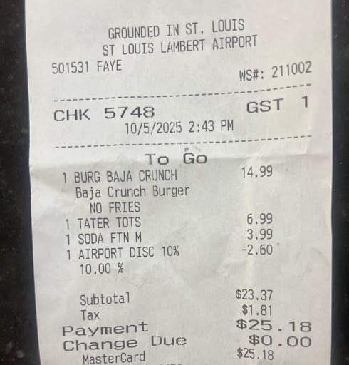 For some background information, I work as flight crew so I go to a fair share of airport restaurants. I found myself with a layover in STL so I decided to give this burger place a shot. Overall the food was good, the customer service was weird and lacking. I walked up and there was no one behind the counter for a minute or so, but also no line so I get it. Then a lady came through a door from the kitchen and stood at the cash register. Now Iâm gen Z, and Iâve heard about the gen z stare, but I brushed it off at people misinterpreting. However, this girl said absolutely nothing and stared at me. I stared back and considered just waiting to see who would break first. But then I decided against that and went the route of âmaybe I can get her to warm up to me by being nice!â So I said âhello how are you doing today?â She replied âgoodâ and then continued to stare. I gave up and then just started my order. Felt rude but at least I tried. I asked if I could get tater tots instead of fries, and she silently pressed buttons on the register so I assumed that meant yes. I ordered a specialty burger and my tots and a drink and it came up to about $25. Also I got a 10% airport worker discount. Expensive, but not unheard of I suppose. I was silently given my drink and receipt and then waited about 7 minutes and then I was silently handed my food. I sat down and looked at my receipt and saw that instead of substituting total for fries, they just said âno friesâ and then charged me for a side of tots. Wouldâve kinda been nice to know they would do that. I went up and inquired about the charge and then she said âwe canât substituteâ so then I asked âok so did I pay for fries and then not receive them?â And then she said âno the fries come free with the burgerâ so then I asked âoh can I get the free fries?â And she said âsureâ so I mean now I have an extra container of fries. So two stars for customer service because at least there was someone there and they didnât throw the food in my face? Bar is low. The burger was yummy and the sides of tots and friend were generous! Just maybe donât expect more customer service from the workers than you would get from a McDonaldâs self-order kiosk. Well actually, at least those...