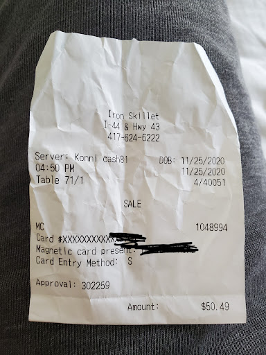 Read moreI've been to many Iron Skillets n other restaurants at the Petros/TAs, this one took the cake. The poor waiter was trying his best explaining to customers, but He didn't offer to eat something else. I kept explaining to the cook and host that the chicken was tooooo hard and other food was out, it took an hour before the cook could put more chicken out. She still put more out that looked and tasted like it has been sitting in a warmer all day. Many customers didn't want the bar, others felt they didn't have a choice because of the deal. They could at least put it in some gravy if the wasn't gonna cook any more. I seldomly have to add salt, pepper, or seasoning on my food, unfortunately I did. The vegetables was old, microwaved texture, and not seasoned. The best thing was the spaghetti sauce, salad bar, and cookies. I kept noticing the cook putting old old dry food on top of old food and never taking the old spoon out. You can tell it was old because you never seen any steam coming from the food especially when they're taking plastic off the top of it. Pre-cookedđĄđŻâšđŹ. At the end, I received my free meal eventhough I wasn't satisfied but made it work. Need new cooks, manager, or someone that knows flavor and willing to keep the bar updated, especially changing out the serving spoons n forks after a certain time. Remember there are alot of customers coming through because of the size of the service at the truck stop. Many don't wash their hands and there is no hand sanitizer being offered unlike other Iron Skillets/restaurants. Should've đŚđĽordered the fish as I...