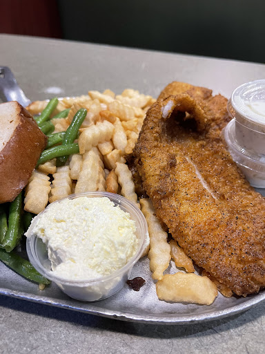 The Buffet was not looking so great when we first arrived,But the lady was busy restocking everything very quickly. We ordered the fried fish and it came out very hot and was perfect. The fries were not hot that came with the fish although they were still warm. They weren't crispy at all but they were average and edible. We got the soup and salad bar with our meal and it was clean and fully stocked. There was a Turkey soup and a Beefy Taco soup. I had the Taco soup and it was excellent. Both soups were thick and full of meat and veggies. The only downfall on the salad bar was that when they brought out a fresh pan of cornbread I was assuming it would be hot. It was a little disappointing that it was ice cold right out of the refrigerator. Overall I gave this place 4 stars because it was clean and the server was polite to us. It was the same as most other iron skillets as far as the staff being heard gossiping about one another. And there were several foreigners in here with there cell phones on speaker and talking very loudly at their tables. I would have appreciated them being asked not to be disrupting the other...