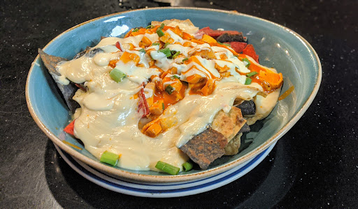 The Buffalo Chicken Nachos were bland. Given how sparingly the Pepper Jack and Gorgonzola cheeses in the nachos were used they feel like they added for inclusion in the menu description and were unnoticeable under a blanket of Queso Blanco. The chicken breast appears to be bag boiled or cooked in a water bath and perhaps kept at temperature in a buffalo sauce bath for quick service. However, it was not overcooked.