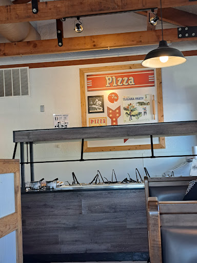Driving through and decided to stop. Used to have a local one in my hometown that we went too All the time. This one however fell short on both service and food selection. We walked in and waited more than 5 minutes to be seated. After being seated we were given our drinks and then didn't see another worker for over 20 minutes. My husband had to walk up to the counter were several workers were standing behind talking...to get our refills. The salad part of the bar was well stocked...but that was all. There is enough room for like 8-10 full pizzas...but when we went up to the bar there was maybe 8 total pieces of pizza and all non-kid friendly types (I had two children with me who don't eat onions, peppers, mushrooms) I assumed that there would be staples like just pepperoni or cheese pizza always on the bar...but I was wrong. We got the attention of the workers who was seating people to ask for a pepperoni pizza...she was pleasant and said she would get one in....after waiting close to 10 minutes she came back out to the bar with the pepperoni----- but only 4 pieces. Is that normal to only bring out half of a pizza??? Especially a staple type pizza like pepperoni? And it was busy in there by this time...so we literally raced to the bar and took all 4 pieces...there were 4 of us dining...we all took 1! My son literally just ate 1 piece of pizza and 1 bread stick....but I paid full price for his buffet! On to desserts....this was a straight up joke. There appeared to be room for 5 different types. So after we waited forever for our 1 piece of pizza, we wanted to see what the desserts were. When I walked up first....the bar was 100% EMPTY. Waited 5 minutes and a girl came out with half a tray of a cinnamon roll type dessert....sorry, my family cleared it out...EMPTY again. Another 5 minutes and a cookie thing came out...ooops- cleared that out quick. What we left, another family was right behind us to scoop what little was left. We even talked to each other about the lack of selection....and lack of a sense of urgency from any of the workers to fill the bar at that. Even whom I assumed was the manager couldn't be bothered to help employees full the bar. He stood behind the register and talked most of the night. The ONE and ONLY worker I saw working was a young lady working the salad bar side...she was hustling to keep it full...and it appeared she was the only one filling it...but she was doing a great job. We will NOT be coming back and will never recommend this place to anyone. Put some more pizza and desserts on your bar people!!! Half a pizza on a Saturday night is a flipping joke! And you should ALWAYS have the pepperoni and cheese...