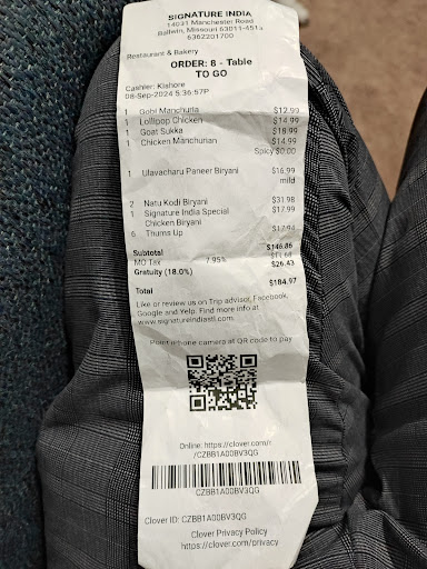 Read moreI had a delicious meal of vegetable korma for lunch. Also shared some delicious garlic naan with my friend, although it was a bit oily. I appreciated that they are still using some COVID precautions--staff are masked and they served us sealed bottled water (and we didn't get charged for them). I wished they'd had a lunch menu because portions and prices were dinner size. But I took my leftovers home and it was delicious upon reheating it, so the price was worth it. So why not 5 stars? My friend ordered the vegetable briyani. She was asked how spicy she wanted it, and she asked "How medium is your medium?" Our server replied it was a true medium, and sensing her hesitation, he asked if she wanted it "medium-mild", to which she said yes. He also asked if that was the same for me, and I nodded (although part of the reason I picked the korma is that it is usually a mild dish). This friend and I often go to eat Thai, which I find typically spicier than Indian, and I'd never seen her react so strongly than she did to how spicy her dish was. It was clear from her reaction that she did not get a medium-mild. Even pouring the yogurt sauce that was served with it gave her little relief. And her dish was a HUGE portion. Had we known some of the dishes were that big, we could have easily split something like that (although I probably wouldn't have been able to eat much of something that spicy). She said the flavor was good, but with the large portion and being unable to eat too much because of the spice level, she was afraid most of her dish was going to go to waste. I was still happy with my dish, and they have an extensive menu, so I plan to go back sometime. I think it would be great to go there for dinner with a few people, order less dishes than we have people, and get a chance to try multiple things eating family style. I definitely think this place is worth a try--just be careful how you order if you don't like...