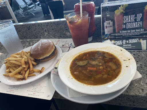 Food came out. Approx $17 for a burger and fries (airport..I get it) However, I don't understand COLD FOOD. All of it. Melted cheese on the burger was cold and stuck to the to go container and the fries were also cold and stale. ALL THREE OF OUR MEALS WERE THE SAME. My daughter mentioned we could've gotten Burger King for cheaper and actually HOT. I believe our burgers were the "Pub Burgers" if I remember correctly