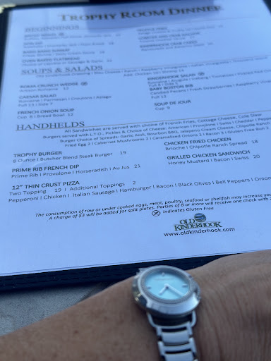 Read moreThis was my first time visiting The Trophy Room and it was a disappointment. First off, we made reservations for a large group. They took us to our table and it was not set up correctly. They only gave us 4 menus so we had to take turns to look at the menu. Our entrees did not arrive at the same time. Some had to wait about 5 minutes or so before their food arrived, so I don't know if the kitchen was short staffed, since that seems to be happening for many businesses these days. I ordered the calamari for an appetizer, and the Seared Scallops in Turmeric Buerre Blanc. The flavor and tenderness of the calamari was nice but it could have been a little crispier. Having eaten scallops in New York and New Orleans, I had high hopes for the market priced scallops at The Trophy Room, but was disappointed here too. They were smaller than I would have expected, gritty, and there was no sauce that I could see. Maybe the sauce had dried up on the scallops from sitting too long because the scallops and baked potato I received were lukewarm at best. Some ordered dessert. Here again we received 1 dessert menu, so again, we had to pass it around the table. I ordered the creme brûlée. The flavor was good, but I feel that maybe it had been cooked too long, since it didn't have the custard like texture. All in all, the furnishings and atmosphere of The Trophy Room were nice and the food was edible, but the food was not up to par for the price...
