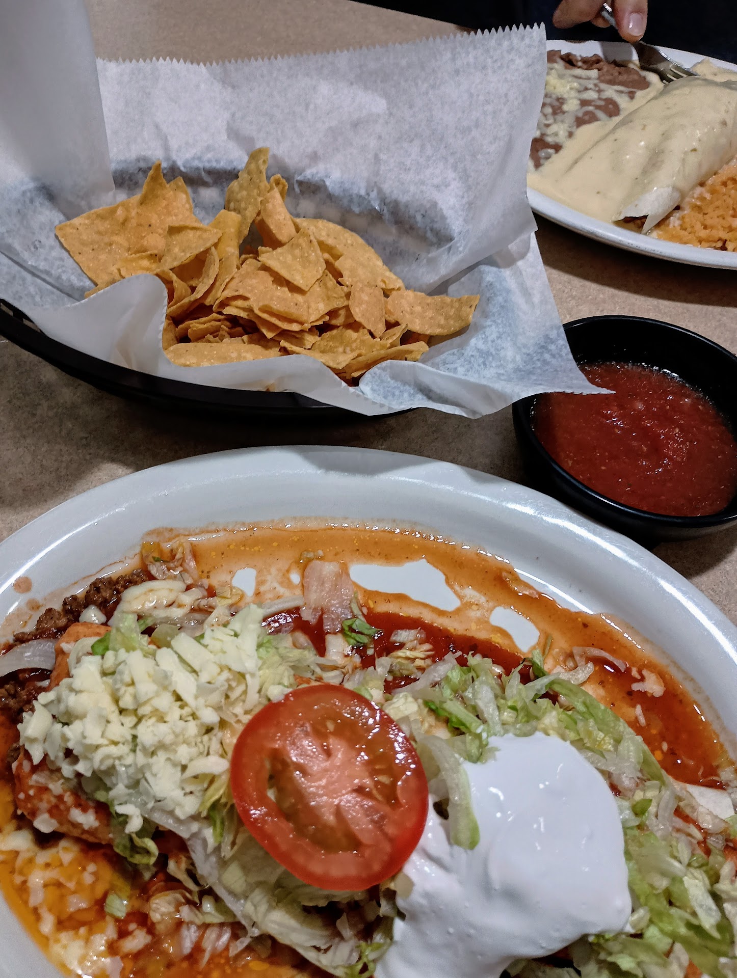 Read moreWe came to this nice little restaurant after the other Mexican place down the road was packed. Very glad we did! Huge menu. Ordered Shrimp a la Diablo and was was really impressed. Big perfectly cooked shrimp in a spicy red sauce with a small avocado lettuce salad, rice and garlic bread. There were so many shrimp I actually couldn’t finish. Also had a shrimp quesadilla and it too was loaded with shrimp, cheese and veggies. Both entrees were done so well and served very quickly. Good mild chips and salsa, plus they have a spicy salsa as well that was very good. Our service was excellent from the very busy efficient waitress. By the time we left it was busy full of happy customers. Very clean and priced were super reasonable. 3 beers, 2 glasses of wine and 2 entrees were just $44. Please eat here, you’re...