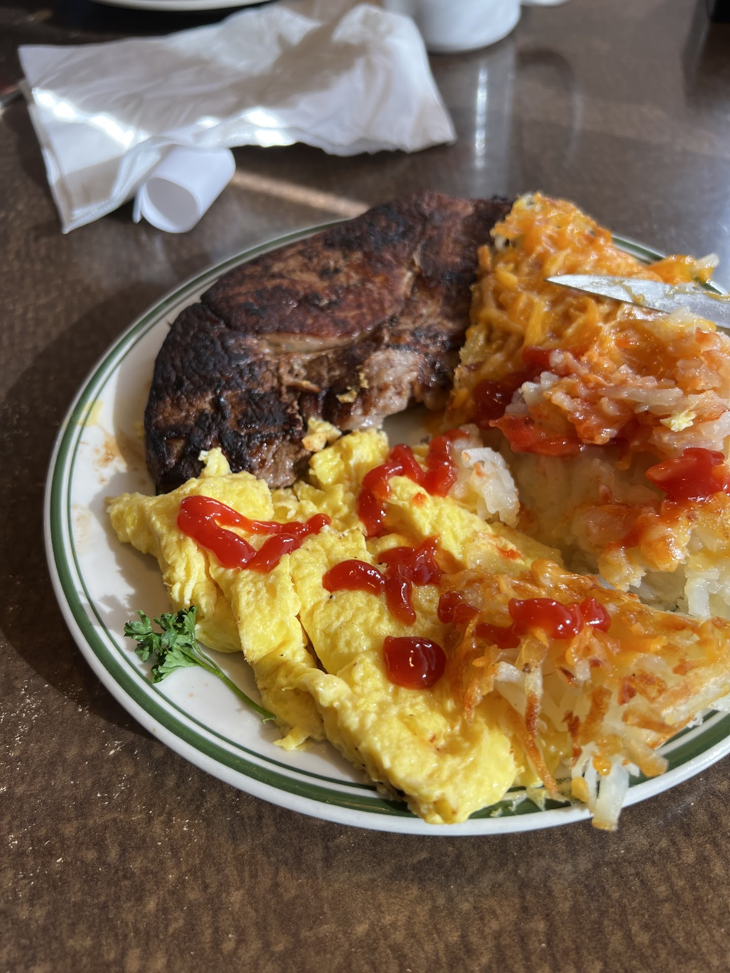 Read moreAfter seating us, the waitress took our order right away and got our drinks fairly fast. We ordered our food and she asked me what dressing I would like, it kind of confused me since there was a salad bar here. I wanted to ask if I was supposed to get salad or if they bring you a side salad with your food but she didn't show up until the food was ready, even though my husband's coffee was low. Then after giving us our food, she never showed up again. We then waited over 30 minutes after we were done eating for a check, we then finally got someone's attention (I bet we would still be sitting there if we hadn't gotten anyone's attention)... that's when they told us that our waitress was on break. Normally when a waitress is about to go on break, they drop off the check and let you know and someone else picks up her table. You don't leave the people to sit there. That is a fault on who is in charge and the waitress. On top of that, knowing this we just got a quick "sorry" as the manager just sat down the check down quickly and walked away. No refills and only saw our waitress 2 times. (Other than when she seated us). Only two stars because the food was actually good. But no one was there to tell us to get salad from the salad bar or if they were supposed to bring it to us. If it wasn't for the good food, I would have...
