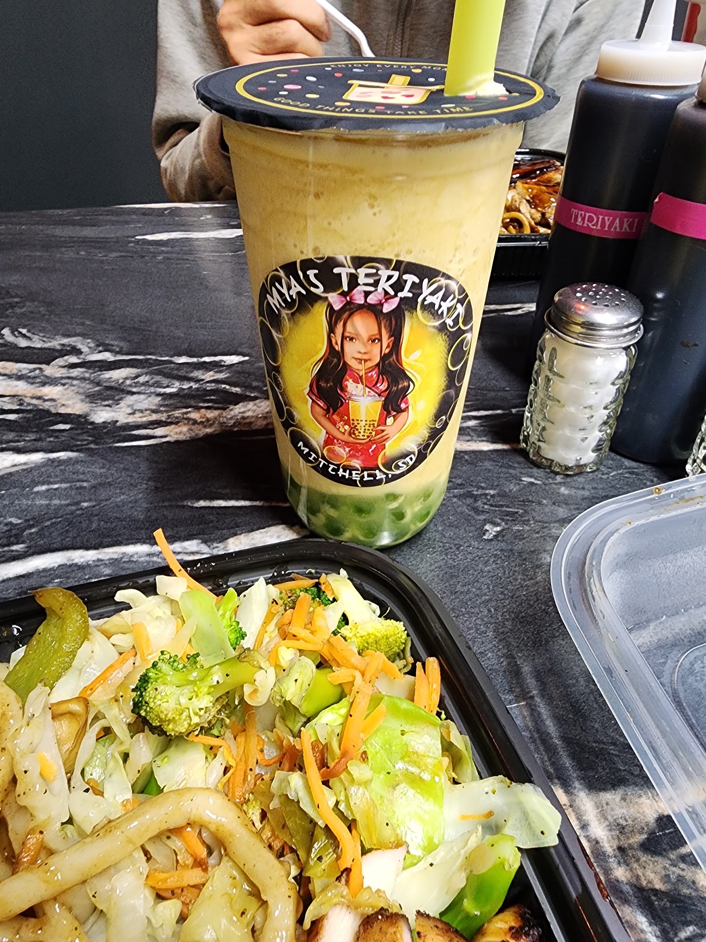 Read moreMya's teriyaki has great potential! I ordered the combo plate which comes with two proteins and two sides. I ordered their orange chicken and their teriyaki steak. What I received was old, hard and honestly kind of flavorless orange chicken. Unfortunately I ordered my order to go & if I were eating there I absolutely would have said something to them nicely about it. Instead of receiving my teriyaki steak, I received teriyaki chicken which was actually pretty delicious. These aren't really that big of issues and it was only their second day open so they have plenty of room to grow and fix these things and I know that having been in the restaurant industry most of my life. I'm just being honest about my experience there, knowing that customers that are honest about experiences like this help things improve. The sides I ordered were fried rice and their mixed veggies. The fried rice was decent, lacked in flavor though. The mixed veggies would have been great if the broccoli was not undercooked. I am really not trying to be harsh this is just the reality of their food I received. I do look forward to going back and giving them another chance sometime, this will not deter me from their restaurant. I ordered a taro tea with tapioca boba that was absolutely scrumptious and I will be ordering more of...